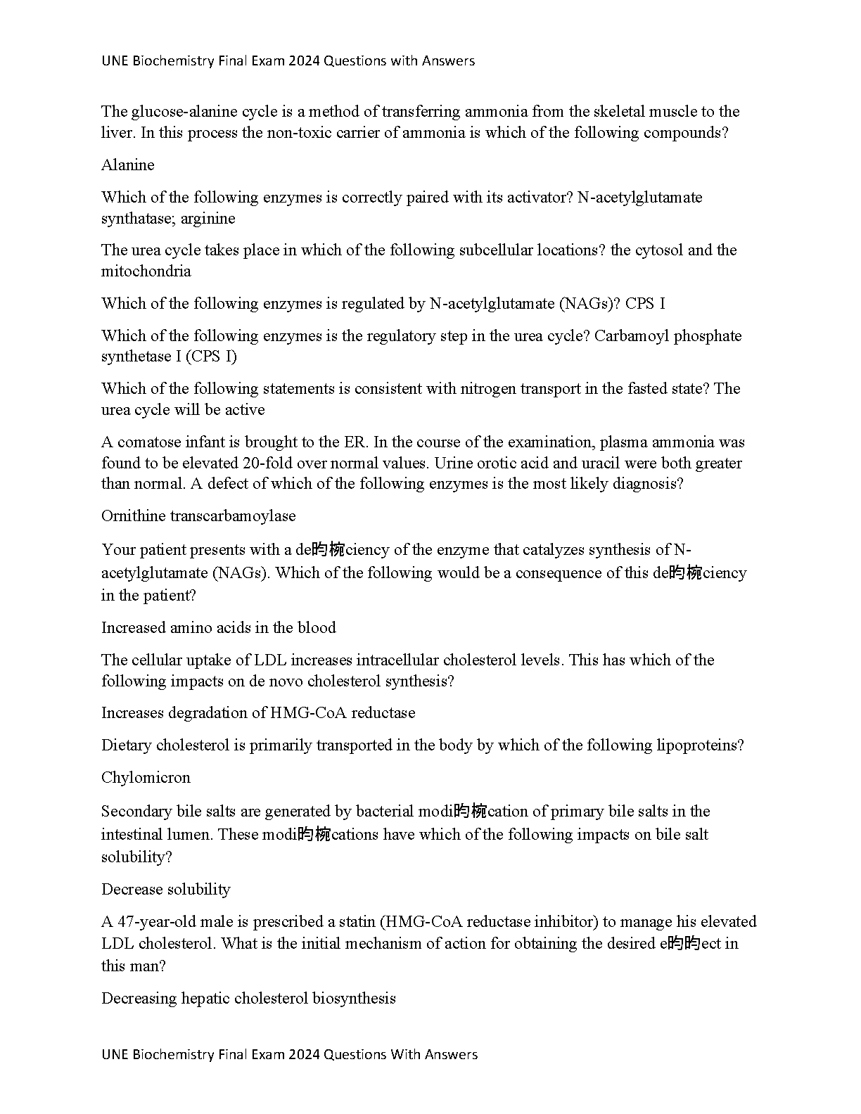 UNE Biochemistry Final Exam 2024: Comprehensive Test Bank with Questions and Answers | Ace Your Exam!