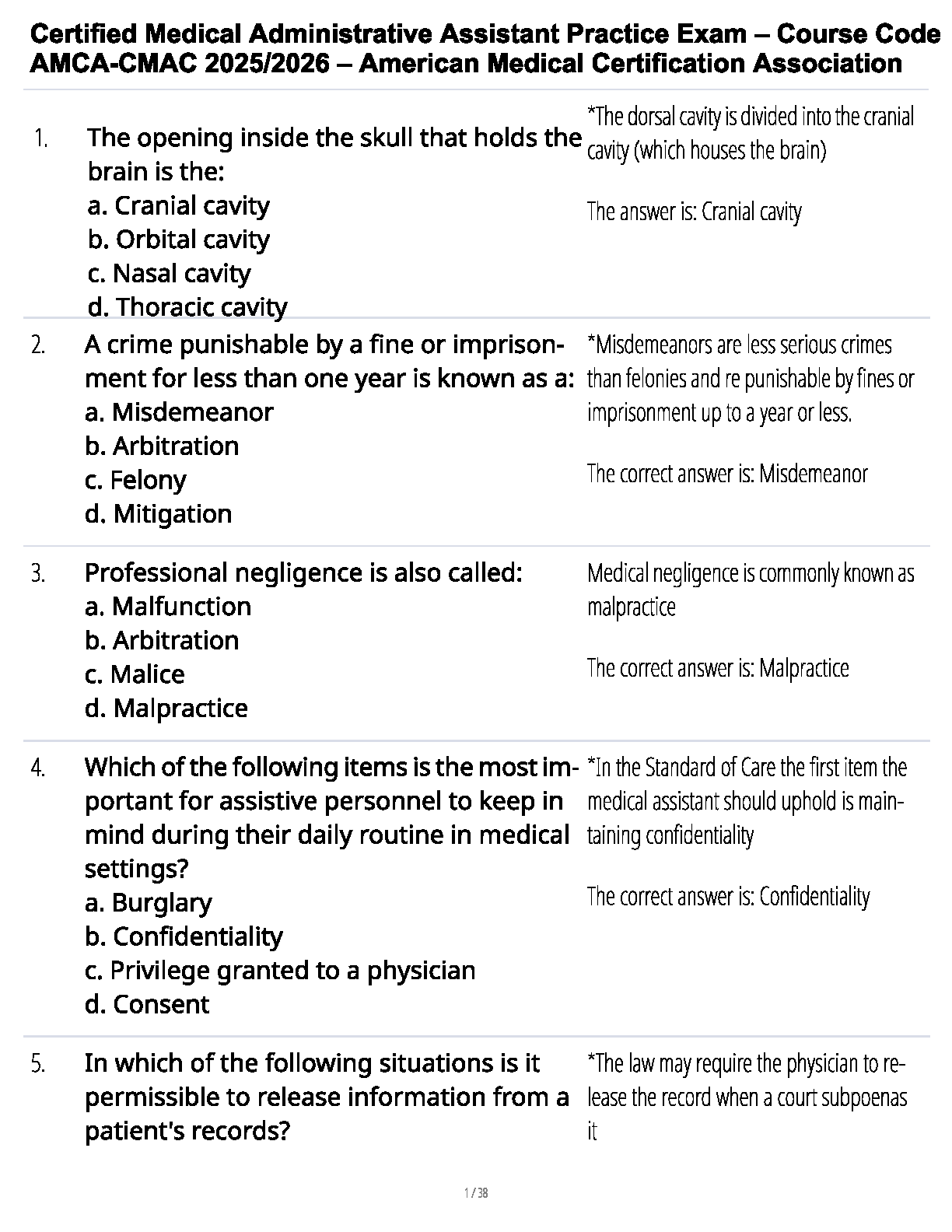 Ace your Certified Medical Administrative Assistant (AMCA-CMAC) certification exam with our comprehensive test bank, fully updated for the 2025/2026 academic year. This essential study resource, provided by the American Medical Certification Association, features a complete collection of practice questions that mirror the actual exam format. Each question comes with a verified correct answer and a detailed rationale to deepen your understanding of key concepts. Master topics in medical terminology, administrative procedures, and legal/ethical responsibilities. This test bank is expertly designed to help you study efficiently, identify areas for improvement, and build the confidence you need to pass your AMCA-CMAC exam on the very first attempt and launch your career as a certified professional.