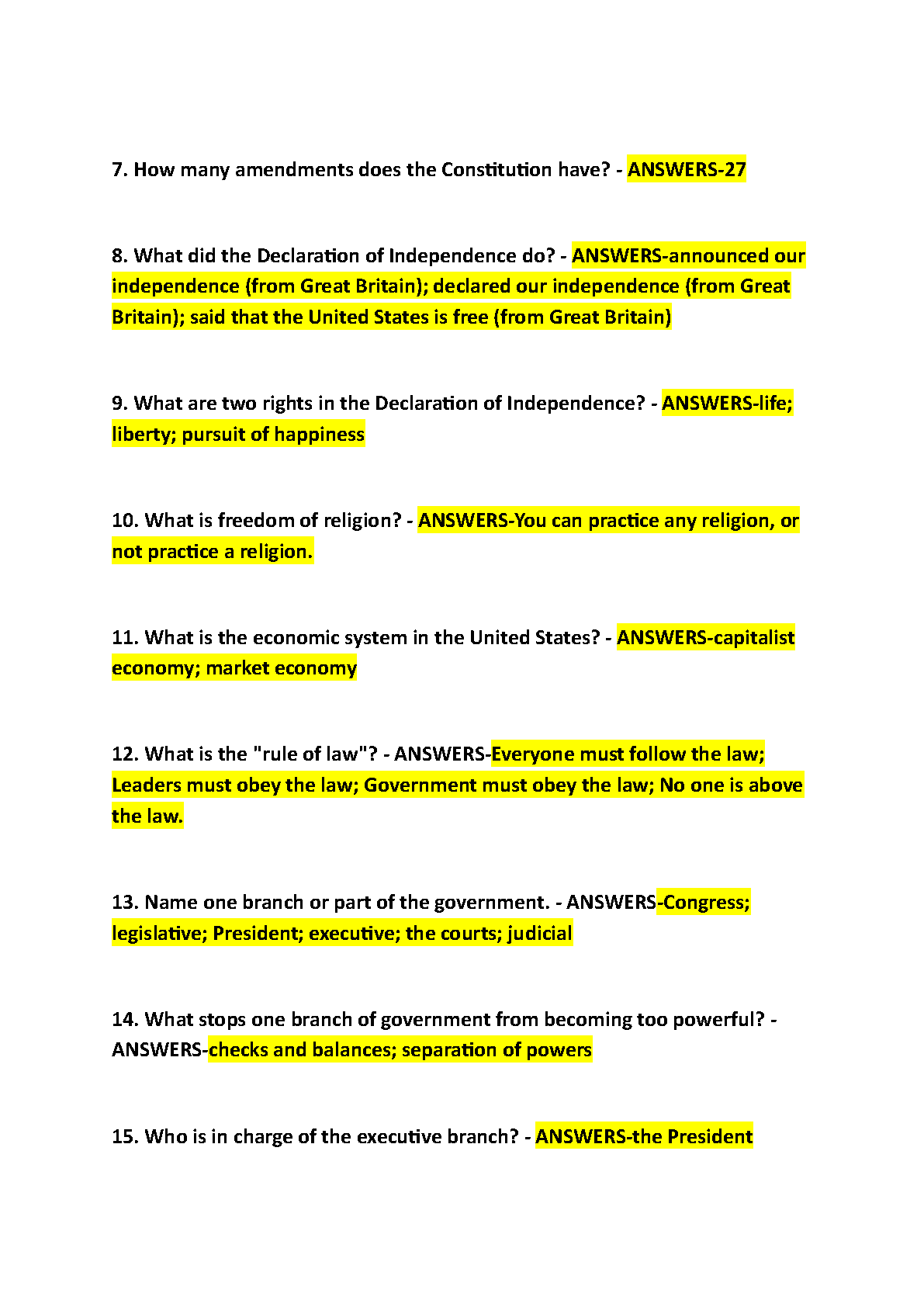Latest 2025/2026 US Citizenship (CWI) Test Exam: A+ Graded Study Guide with Actual Questions & Answers