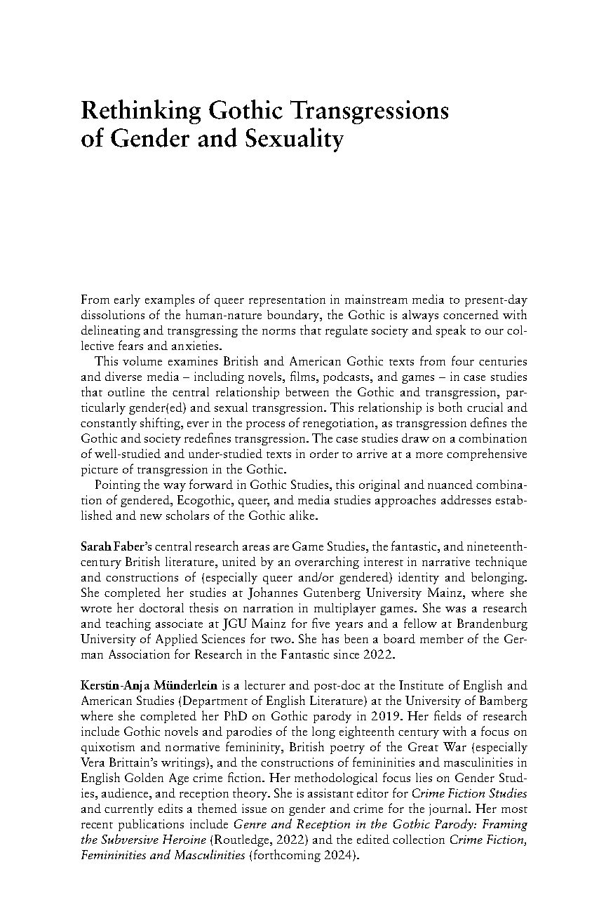 Complete Guide to Rethinking Gothic Transgressions of Gender and Sexuality, 1st Edition by Sarah Faber & Kerstin-Anja Münderlein - Updated for 2025/2026 Exams