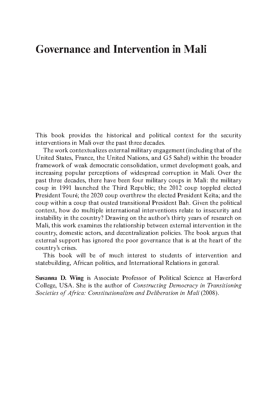Governance and Intervention in Mali: Elusive Security, 1st Edition by Susanna D. Wing | 2025/2026 Academic Study Guide to Pass Exams First Try