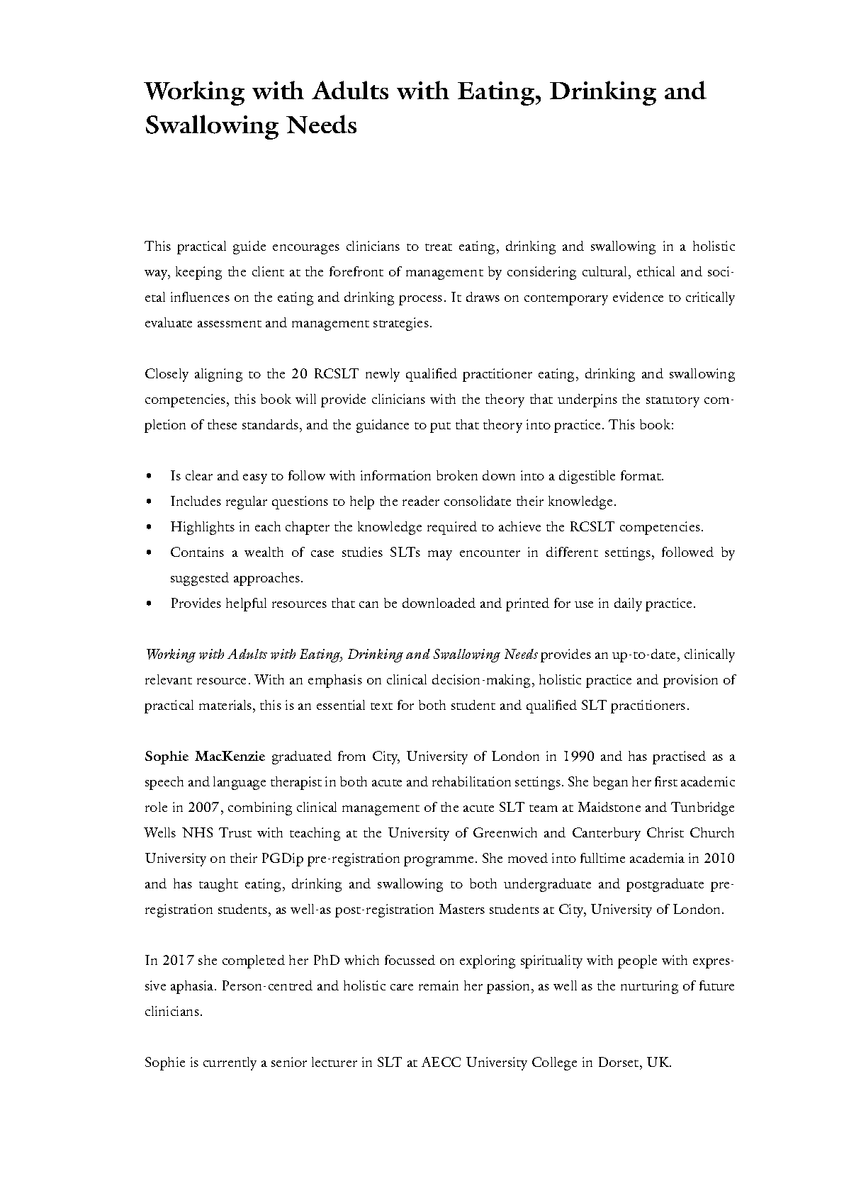 Working with Adults with Eating, Drinking and Swallowing Needs, 1st Edition by Sophie Mackenzie | 2025/2026 Exam Prep Guide for First-Attempt Success