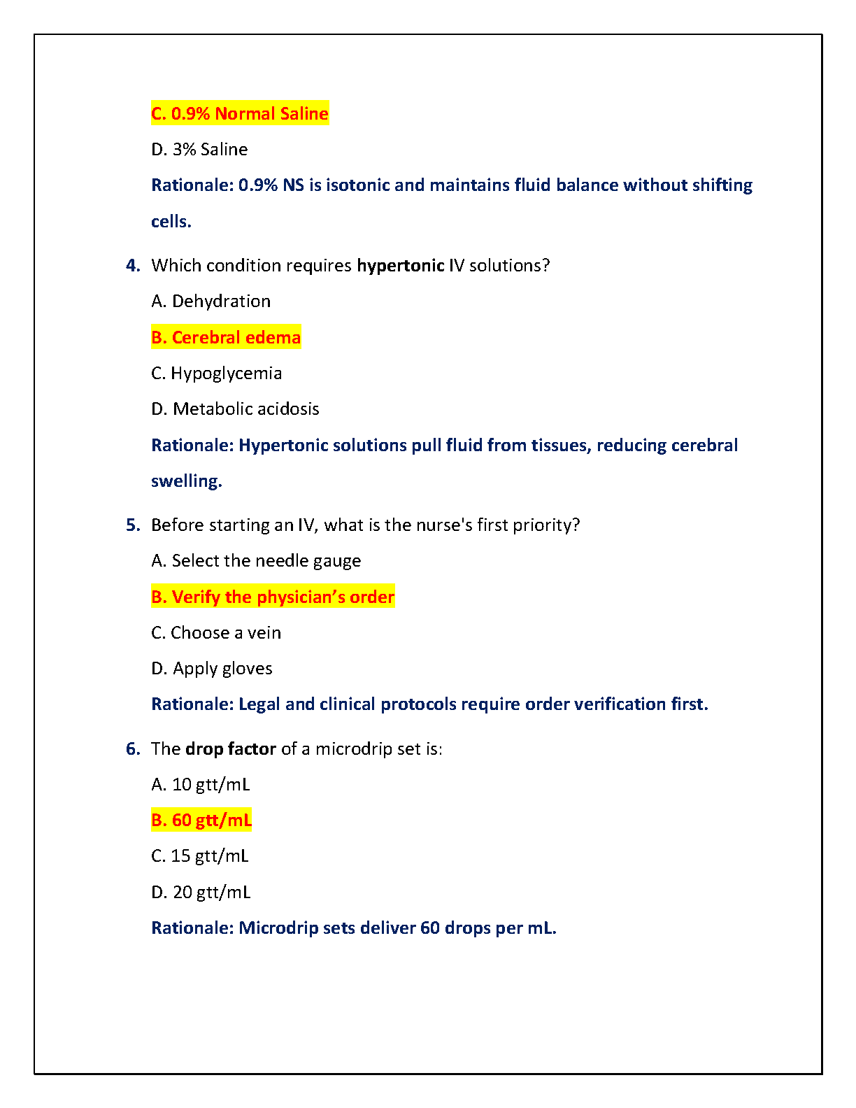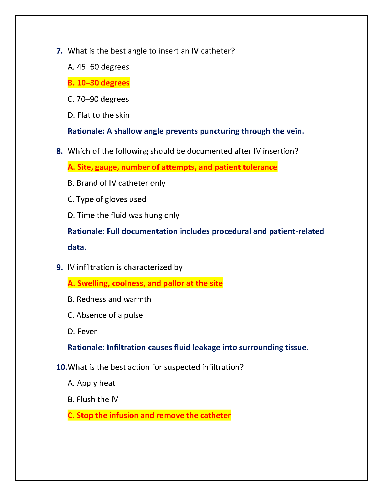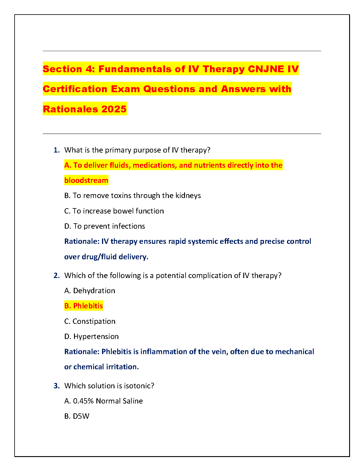 Ace your IV therapy certification with our comprehensive 2025 Test Bank for the CNJNE IV Certification Exam. This essential study guide provides a complete collection of practice questions, verified answers, and detailed rationales covering the fundamentals of IV therapy. Master key topics, understand the reasoning behind correct answers, and build the confidence you need to pass your exam on the first attempt. This resource is your key to success in achieving your IV certification.