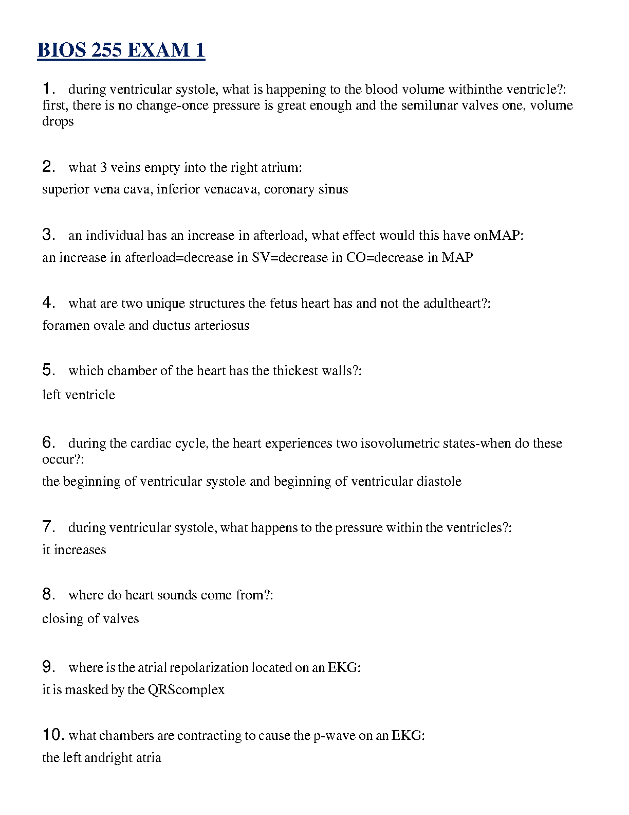 Ace your Anatomy and Physiology II course with this comprehensive exam elaboration for BIOS 255 Exam 1. Updated for the 2025/2026 academic year, this guide provides detailed, accurate answers to key questions on the cardiovascular system. Master essential topics such as the cardiac cycle, ventricular systole, heart anatomy, fetal circulation (foramen ovale, ductus arteriosus), and EKG interpretation (P-wave, QRS complex). This study resource is expertly crafted to help you grasp complex concepts and pass your exam with high marks on your first try, eliminating the need for resits.