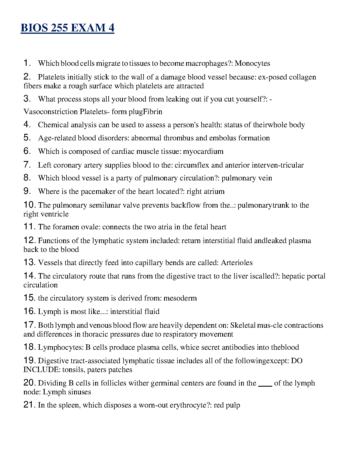 BIOS 255 Exam 4 Test Bank | Verified Questions & Correct Answers | 2025/2026 Latest