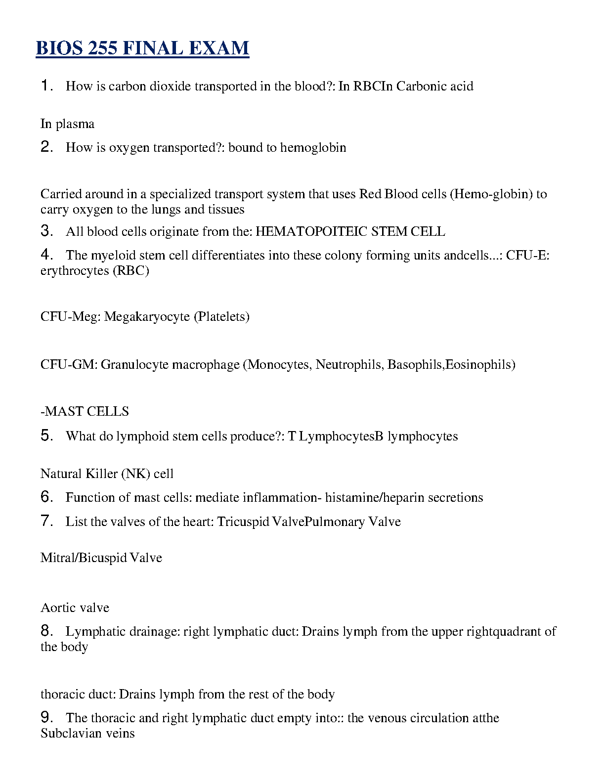 Unlock academic success in your Anatomy and Physiology II course with our definitive study guide for the BIOS 255 Final Exam. This 2025/2026 edition offers a comprehensive collection of questions and meticulously verified answers, covering all essential topics. Master complex subjects including blood cell formation (hematopoiesis), gas transport mechanisms, the differentiation of myeloid and lymphoid stem cells, the anatomy of heart valves, and the complete lymphatic drainage system. This resource is expertly crafted to boost your confidence, clarify difficult concepts, and provide the targeted preparation needed to pass your final exam on the first attempt and secure a top grade.