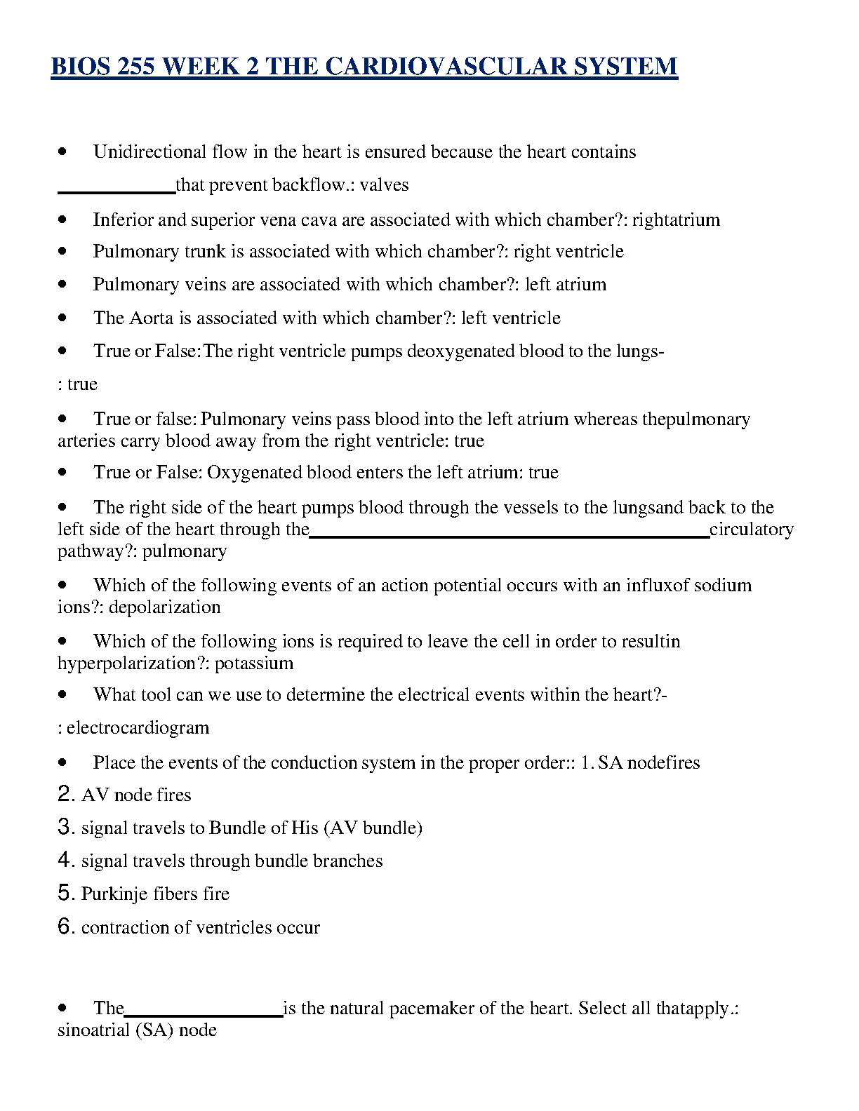Excel in your BIOS 255 course with this expertly crafted Week 2 test bank focused on the Cardiovascular System. Sourced from the acclaimed 10th Edition of Anatomy & Physiology by Kenneth S. Saladin, this guide contains a full range of exam-style questions complete with verified, accurate answers. Master key concepts such as blood flow through the heart chambers, the function of valves, the electrical conduction pathway, and the principles of cardiac action potentials. This essential study tool is designed to deepen your understanding and ensure you are fully prepared to ace your upcoming exams.