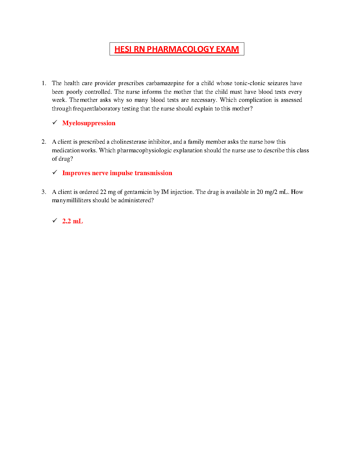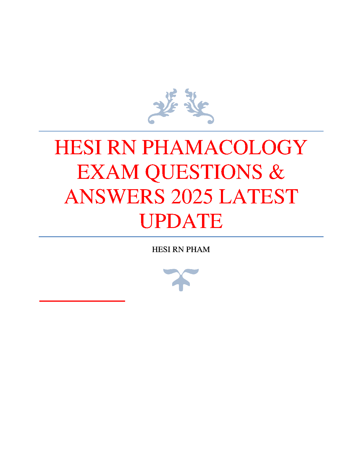 Struggling with pharmacology for your HESI RN exam? This comprehensive study guide is your key to success, featuring the latest and most relevant exam questions with detailed answers for the 2025-2026 HESI RN Pharmacology test. Designed to help you master complex drug classifications, side effects, and nursing considerations, this resource is your ultimate tool to build confidence, ace the exam on your first attempt, and avoid costly resits. Get the grade you deserve and take the next step in your nursing career!