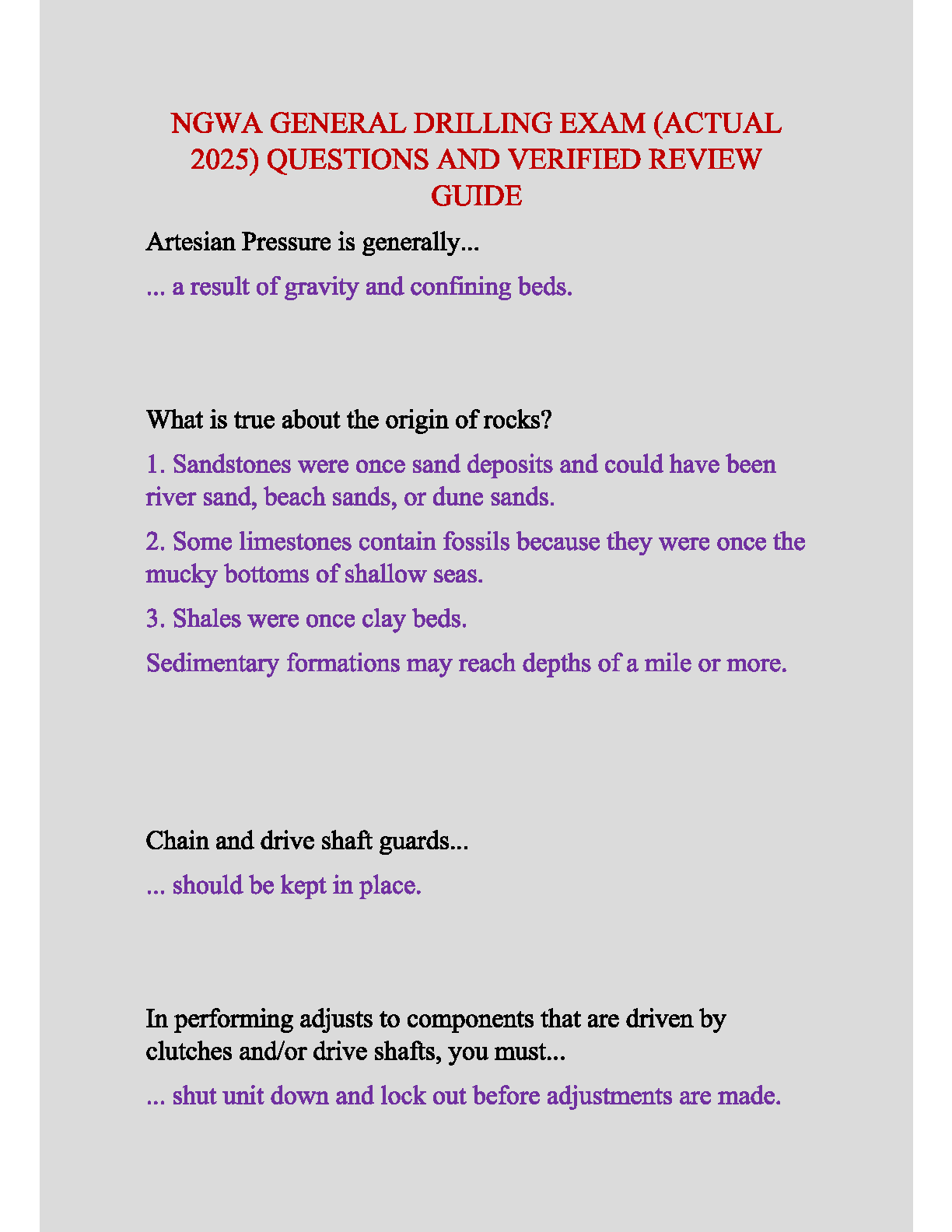 Latest 2025 NGWA General Drilling Exam Test Bank: Complete Questions and Verified Answers Guide by the National Ground Water Association for First-Attempt Success