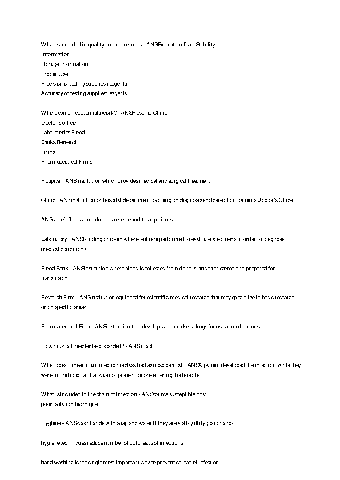 Ace your MEDCA Phlebotomy Technician Certification (CPT) exam with our comprehensive test bank for the 2025/2026 academic year. This ultimate study guide is packed with the latest exam questions and detailed, verified answers covering all key areas, including patient identification, venipuncture procedures, specimen handling, safety protocols, and essential laboratory operations. Our resource is expertly designed to help you build confidence, master critical concepts, and successfully pass your certification on the very first try. Stop worrying about resits and start your phlebotomy career with the best preparation tool available!