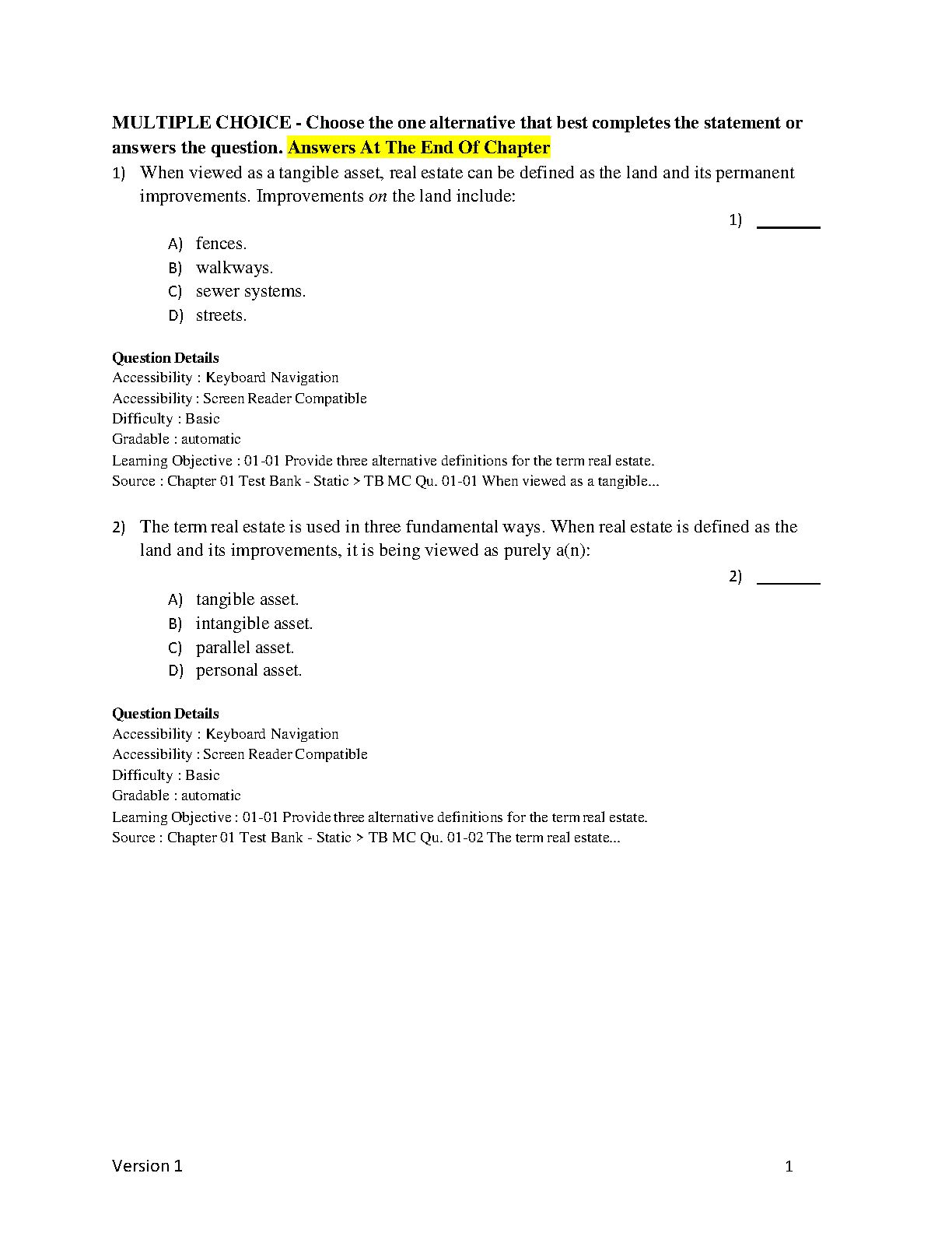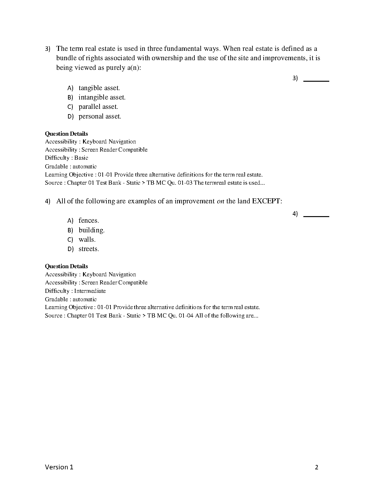 Unlock your full potential in real estate studies with the official Test Bank for 'Real Estate Principles: A Value Approach,' 7th Edition, authored by David C. Ling and Wayne R. Archer. This essential study companion provides a complete collection of exam-style questions, answers, and rationales, directly corresponding to the textbook chapters. Sharpen your understanding of complex topics, from property rights and valuation to real estate finance and investment. Our test bank is the ultimate tool to ace your exams, build confidence, and solidify your knowledge for a successful career in real estate. Download now and start studying smarter, not harder.
