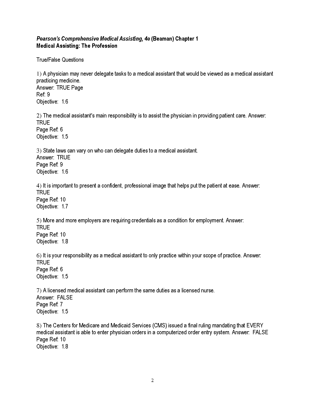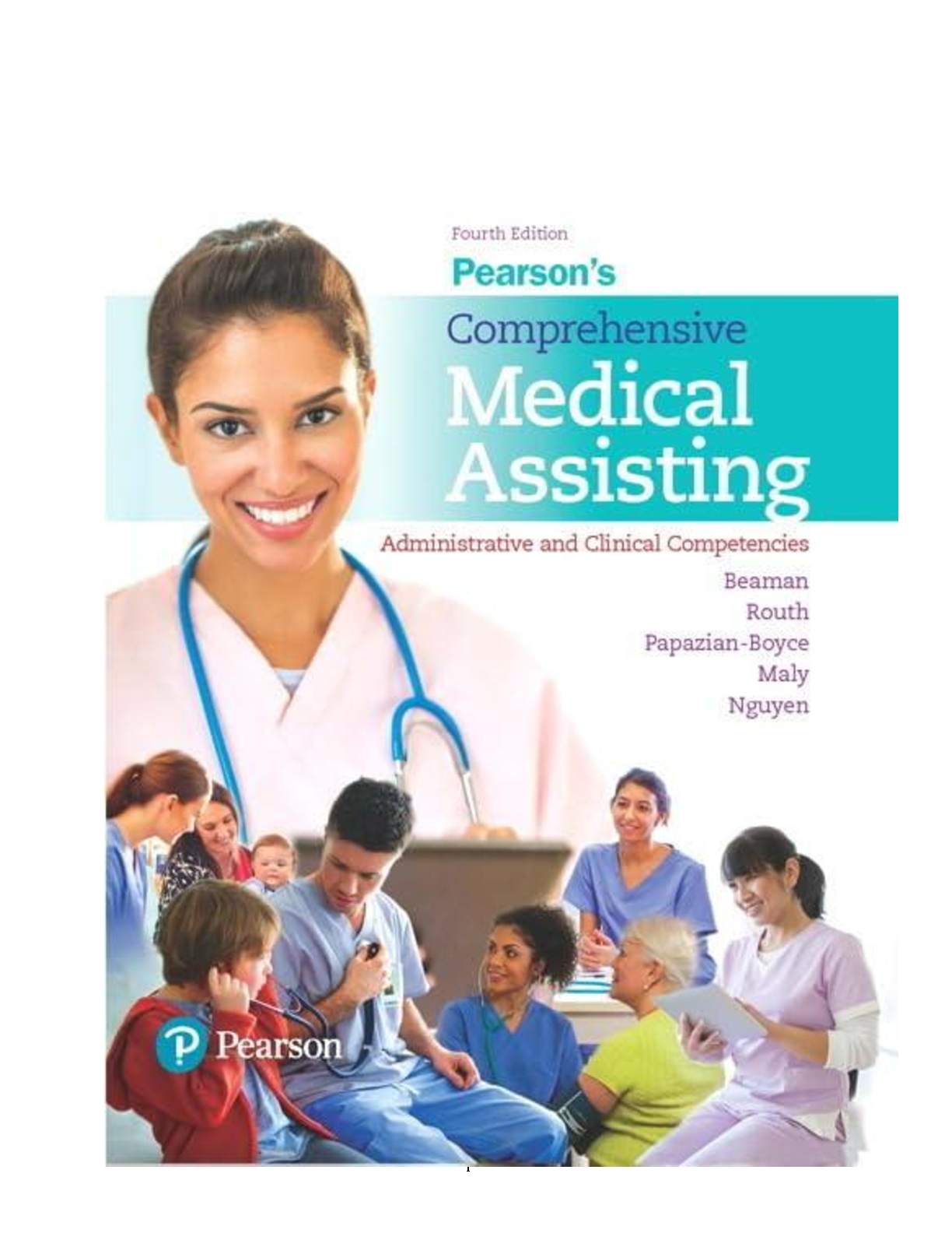 Test Bank for Pearson's Comprehensive Medical Assisting: Administrative and Clinical Competencies, 4th Edition by Nina Beaman, Kristiana D. Routh, Lorraine M. Papazian-Boyce, Karen Maly, Tonia L. Nguyen