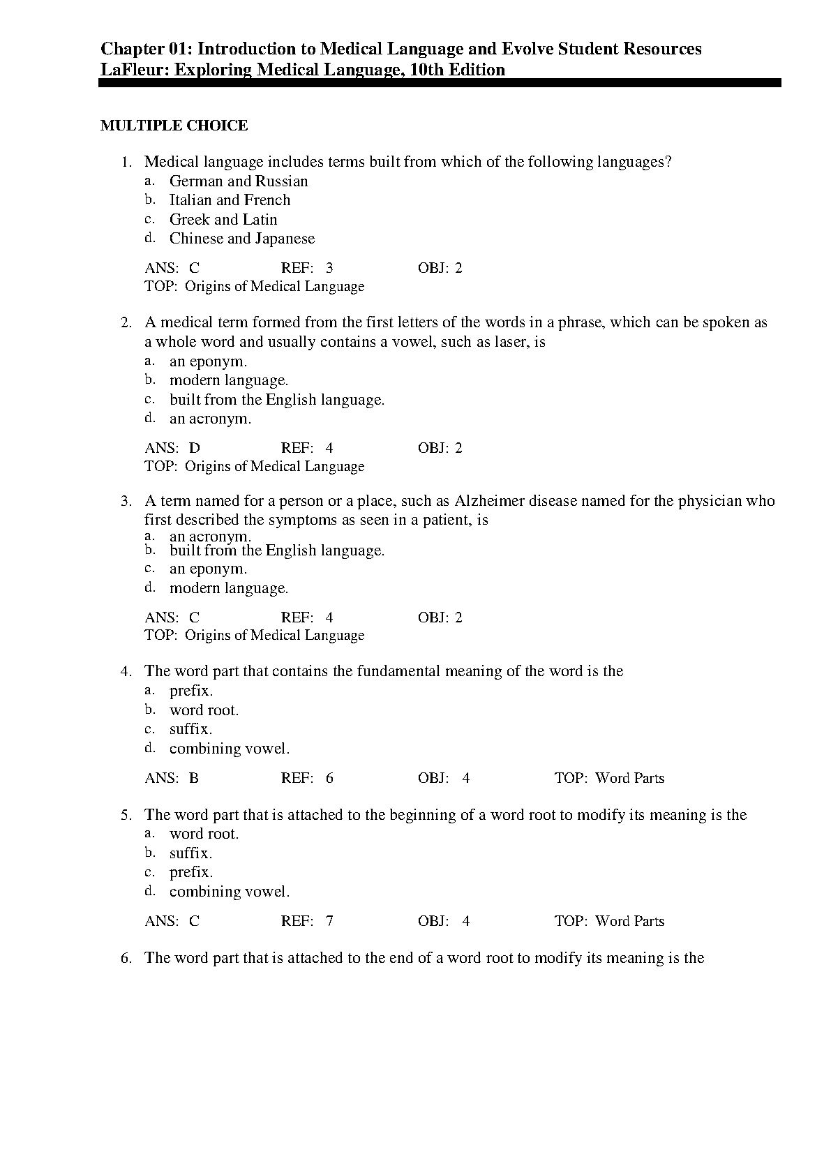 Test Bank for Exploring Medical Language, 10th Edition by Myrna LaFleur Brooks & Danielle LaFleur Brooks