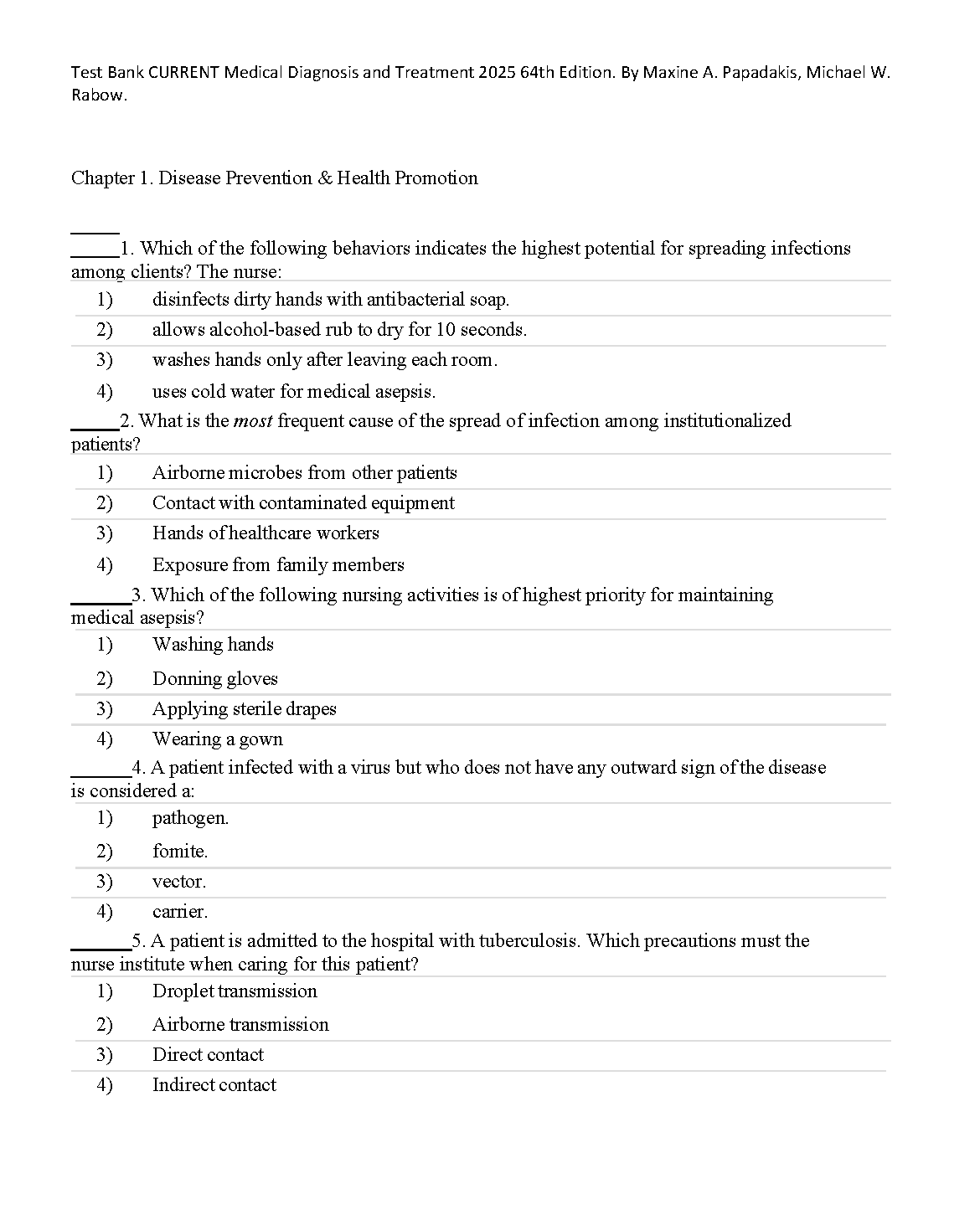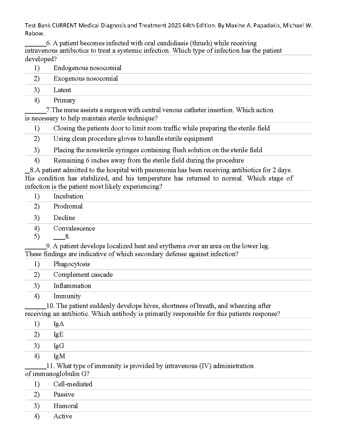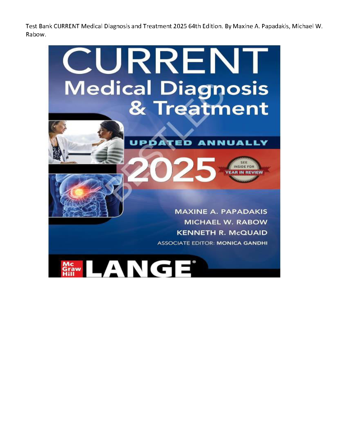 Test Bank for CURRENT Medical Diagnosis and Treatment, 64th Edition (2025) by Maxine A. Papadakis, Michael W. Rabow, and Kenneth R. McQuaid