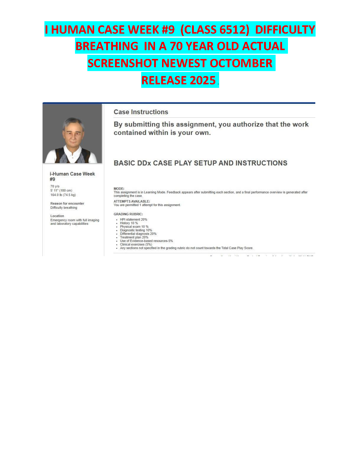 Master iHuman Case Week 9 (Class 6512): A+ Guide for 'Difficulty Breathing in a 70-Year-Old' | New 2025/2026 Edition