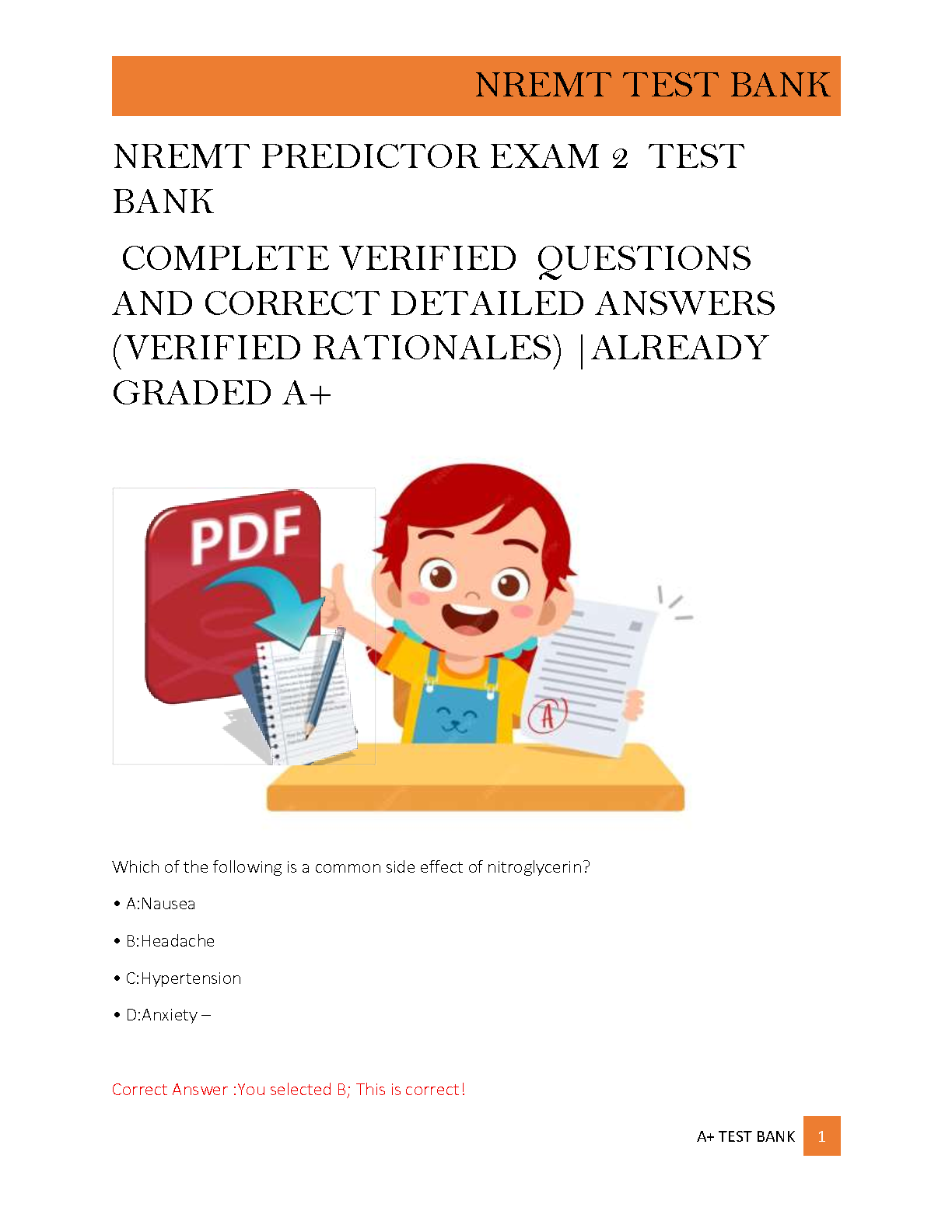 NREMT Predictor Exam 2 Test Bank: Complete Questions, Answers & Verified Rationales for A+ Success