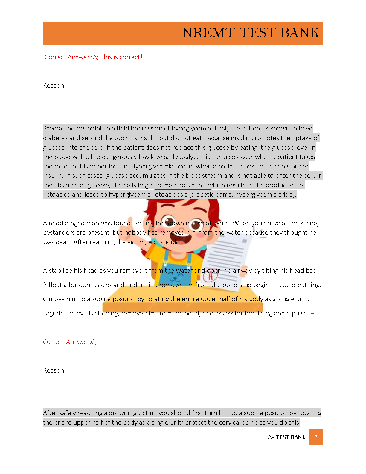 Ace your NREMT Predictor Prep Exam with this complete and verified test bank. This resource provides a full collection of questions with correct, detailed answers and in-depth rationales, all already graded A+. It's the perfect study tool to master the material, understand key concepts, and ensure you're fully prepared to pass your exam with confidence. Get immediate access to high-quality, verified content designed for success.