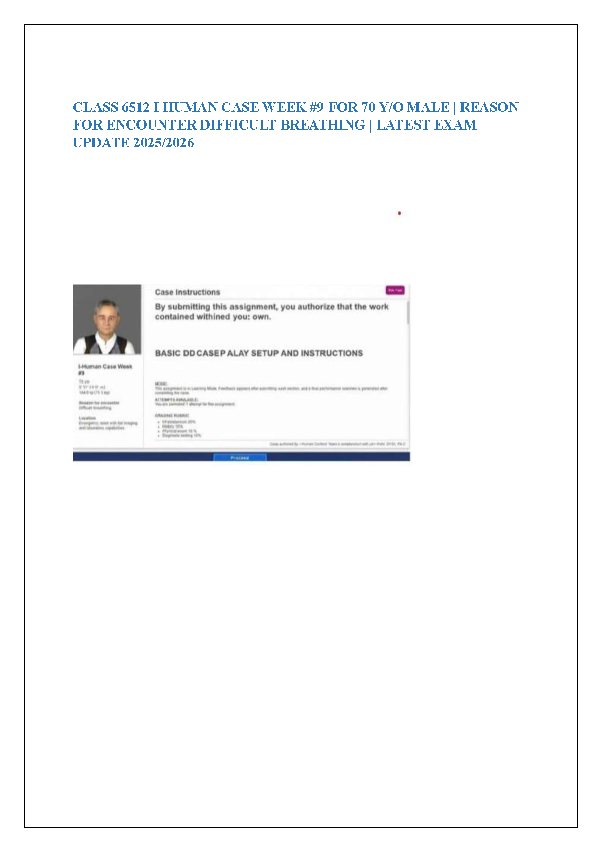 Class 6512 iHuman Case Study: Week 9 - 70-Year-Old Male with Difficulty Breathing | Latest 2025/2026 Exam Guide