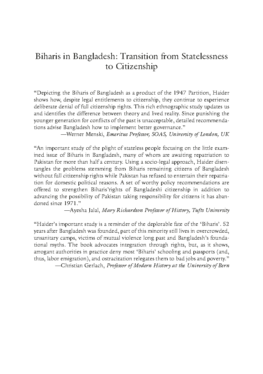 Biharis in Bangladesh: Transition from Statelessness to Citizenship, 1st Edition by Zaglul Haider - A-Level Politics & Sociology Study Notes 2025/2026 | Ace Exams on First Attempt