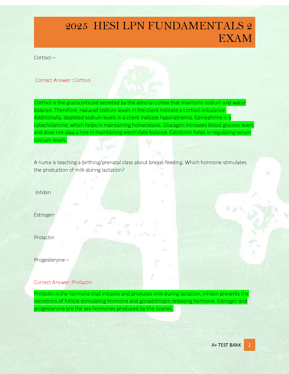 HESI LPN Fundamentals 2 Exam Test Bank 2025: Verified Questions, Answers, and Rationales for A+ Results