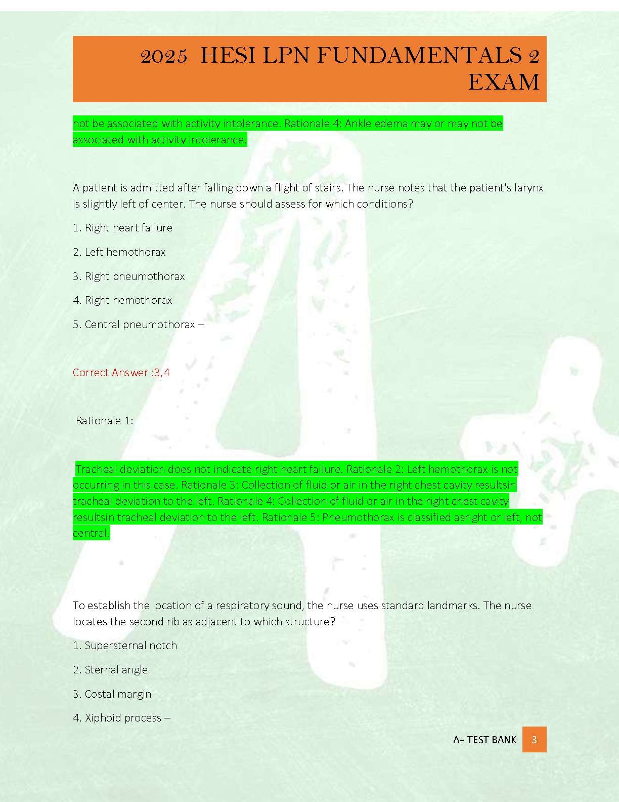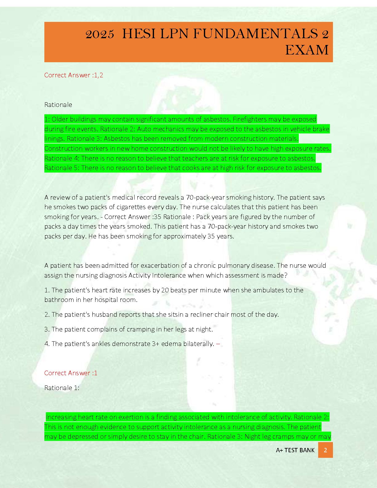 HESI LPN Fundamentals 2 Exam Test Bank 2025/2026: A+ Graded Study Guide with Verified Questions, Answers, and Detailed Rationales