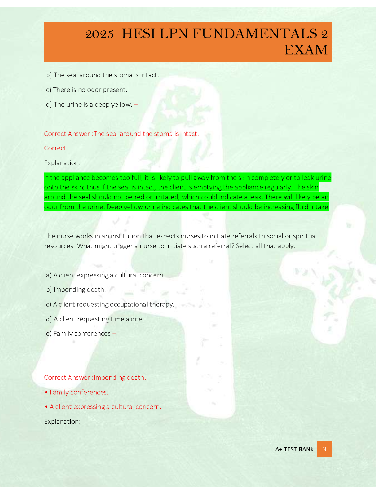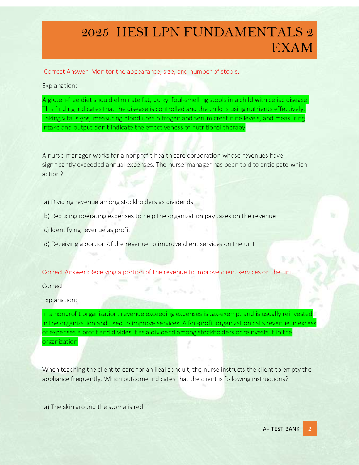 Excel in your nursing studies with the ultimate HESI LPN Fundamentals 2 Exam Test Bank for the 2025-2026 academic year. This essential study guide provides a curated collection of verified questions and detailed answers with comprehensive rationales, mirroring the actual exam format. It's designed to help you master key concepts and build the confidence needed to pass on your first attempt. Achieve an A+ grade and avoid costly resits with this proven resource.
