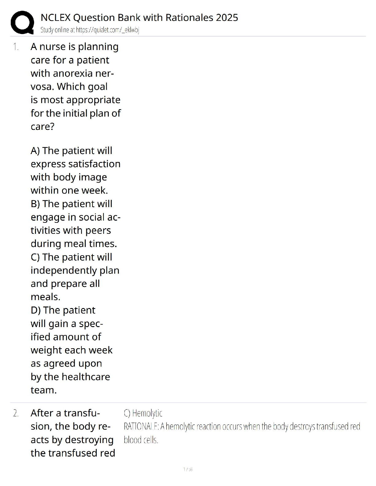 Master the NCLEX-RN 2025 exam with our comprehensive test bank. This guide features a vast collection of practice questions, each paired with a detailed rationale to explain the correct answer. Covering all essential nursing topics, this resource is meticulously designed to sharpen your critical thinking skills and boost your confidence. Prepare effectively, understand the 'why' behind each answer, and walk into your exam ready to pass on the first try.