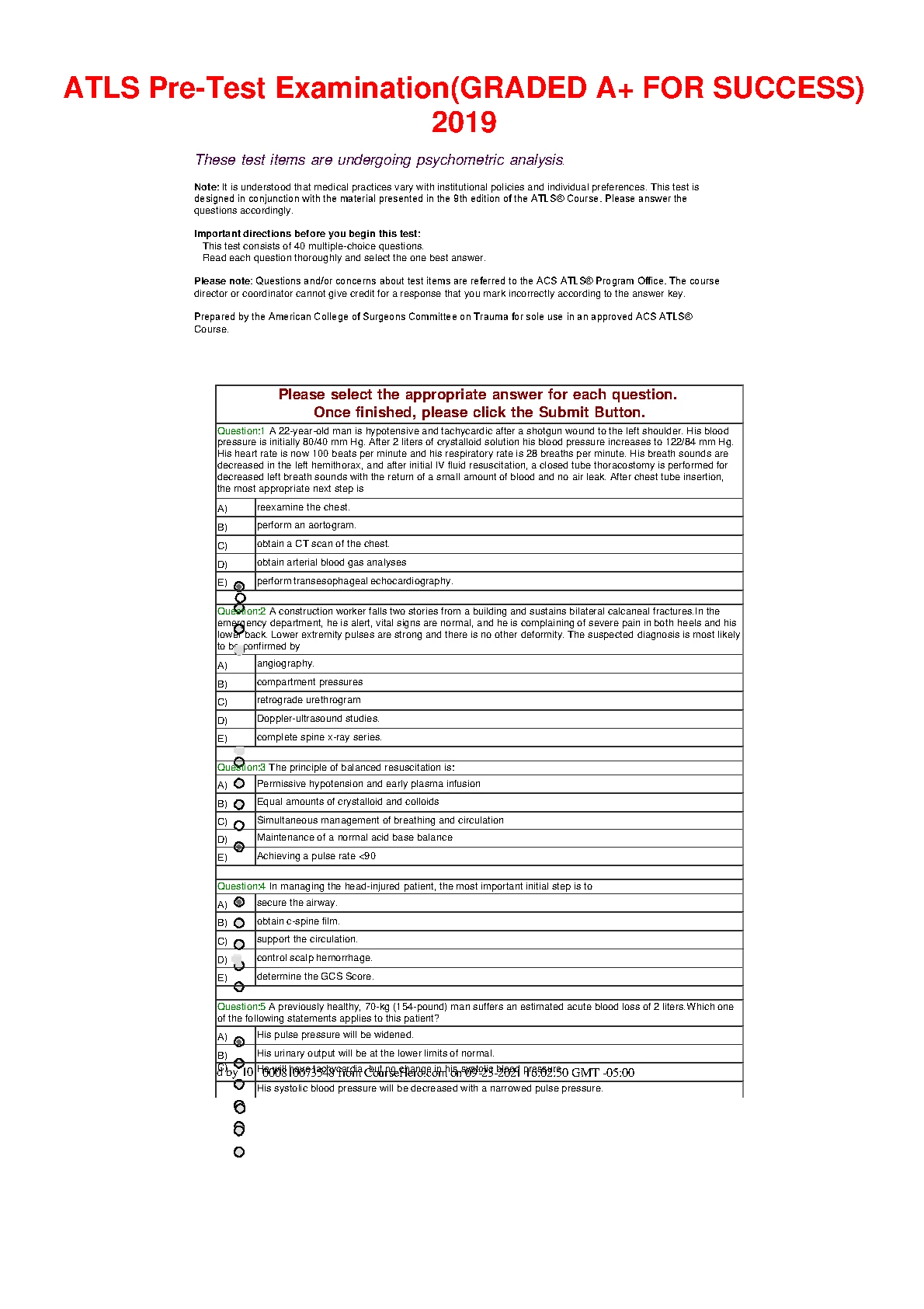 ATLS Pre-Test Examination. QUESTIONS AND ANSWERS. GRADED A+. DOWNLOAD on www.hackedexams.com INSTANTLY.