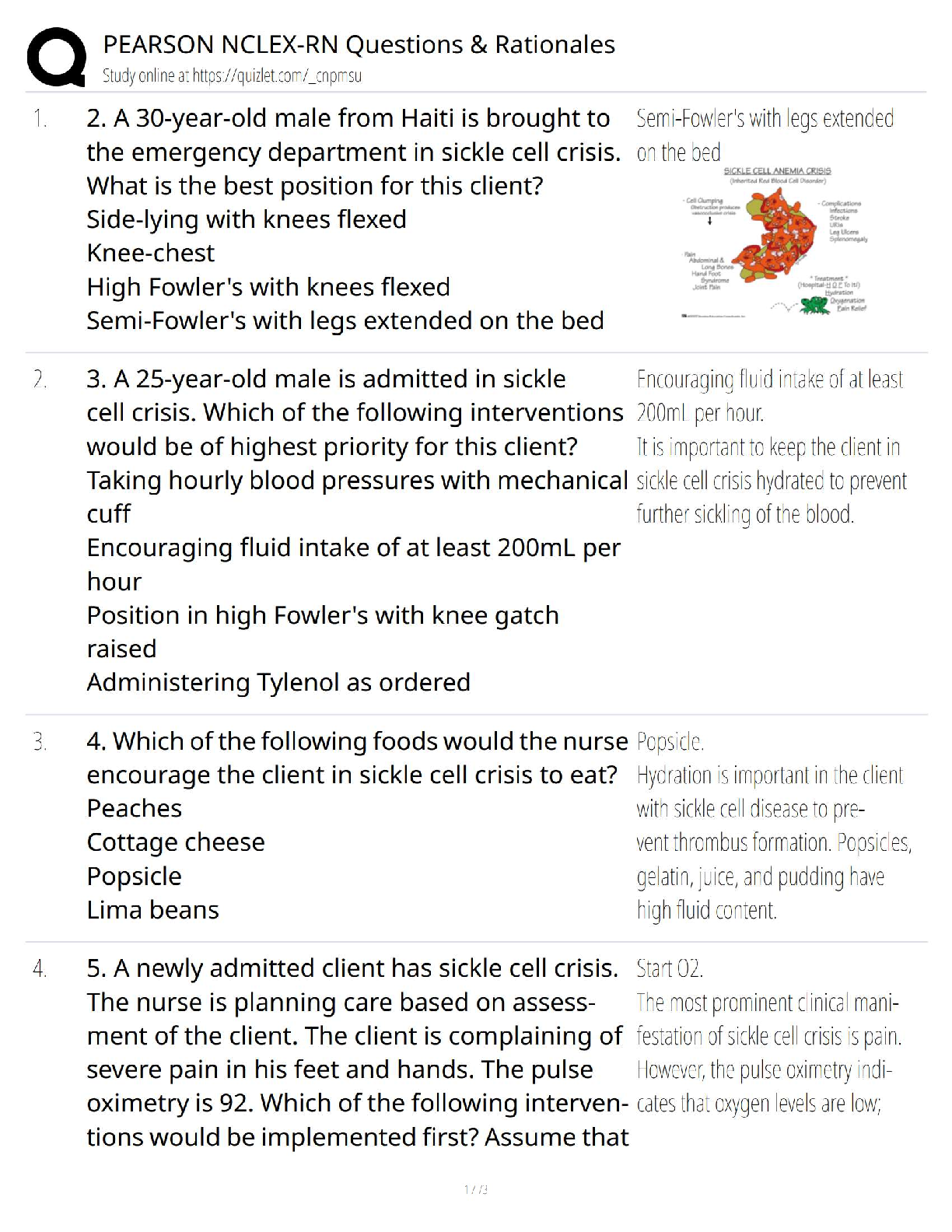 Instantly download the official Test Bank for the 10th Edition of Pearson Reviews & Rationales: Comprehensive Review for NCLEX-RN by MaryAnn Hogan. This is not the textbook; it is a complete collection of exam questions and answers with detailed rationales to help you master the material. Sharpen your test-taking skills and deepen your understanding of complex nursing topics, like the sickle cell crisis questions shown. It's the ultimate study guide to help you conquer the NCLEX-RN exam with confidence and pass on your first attempt.