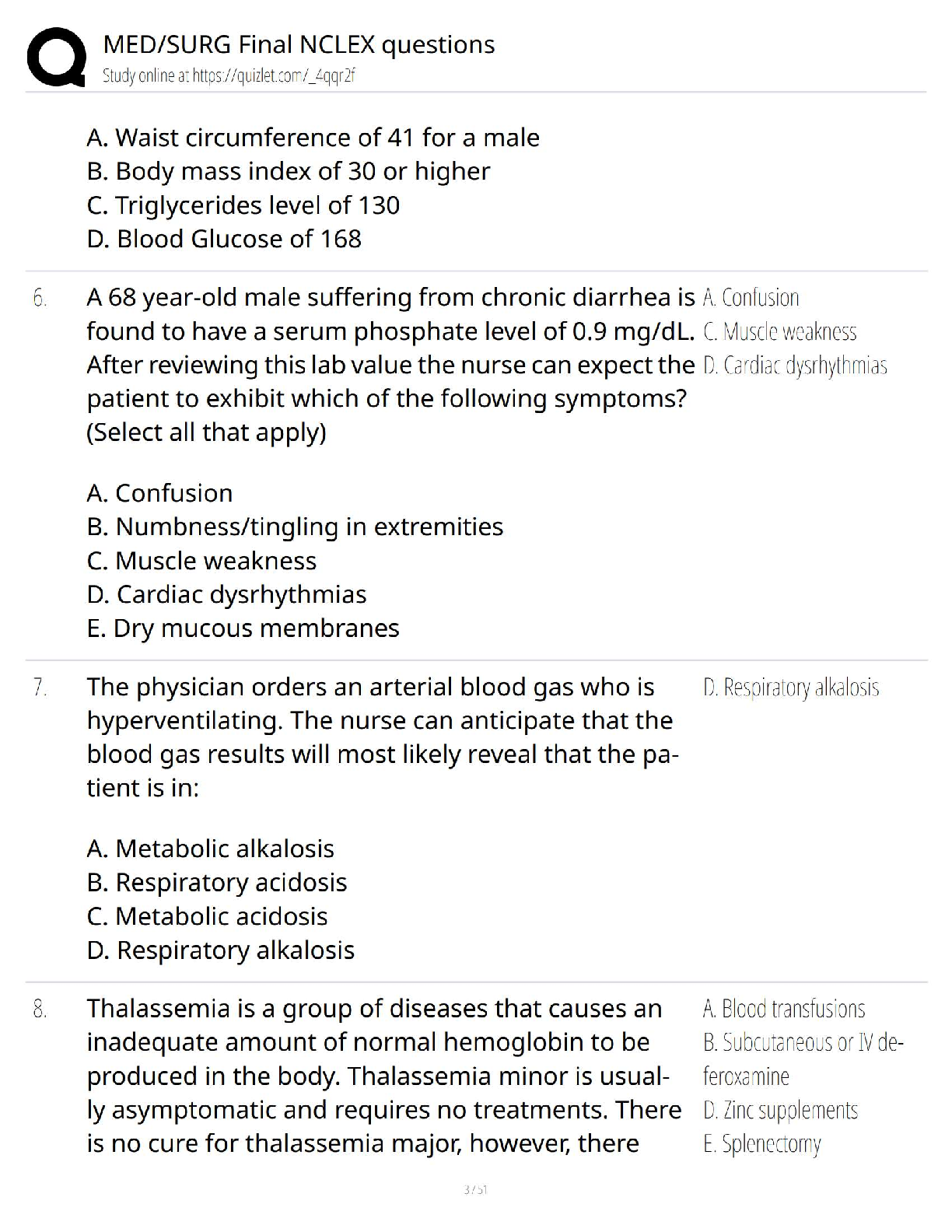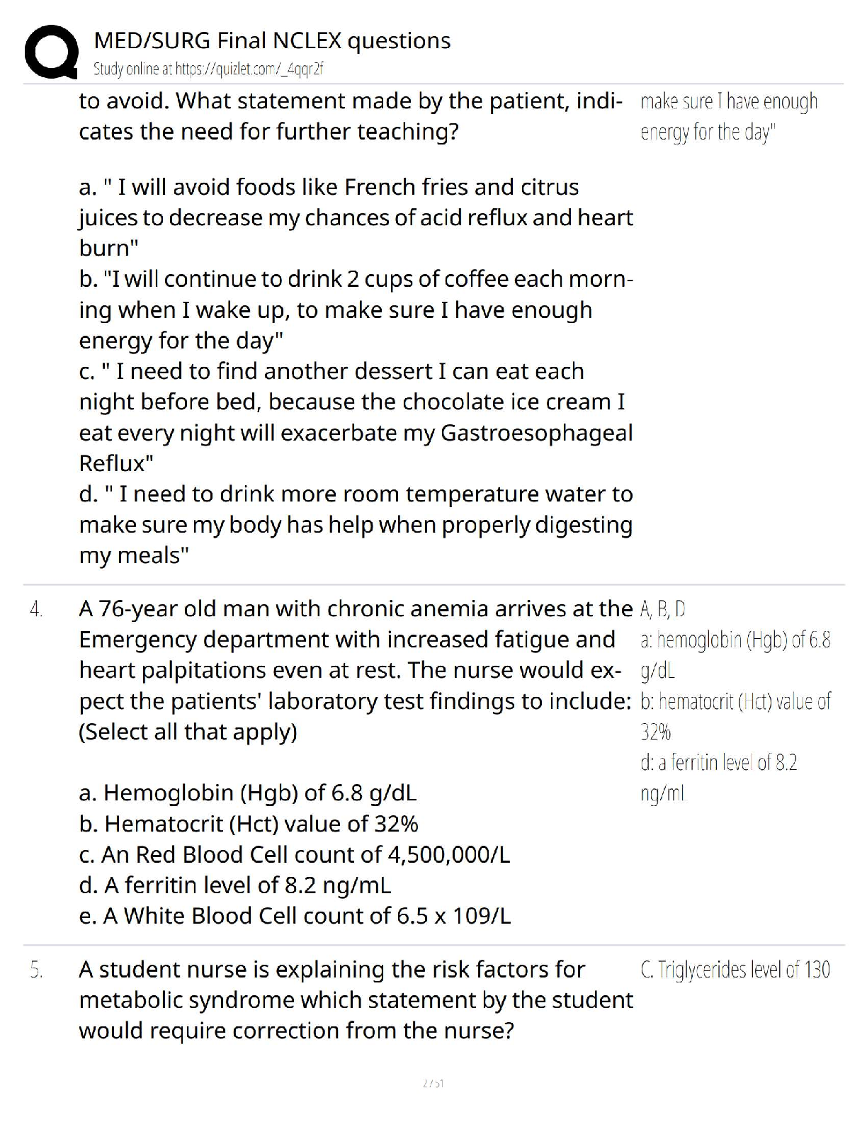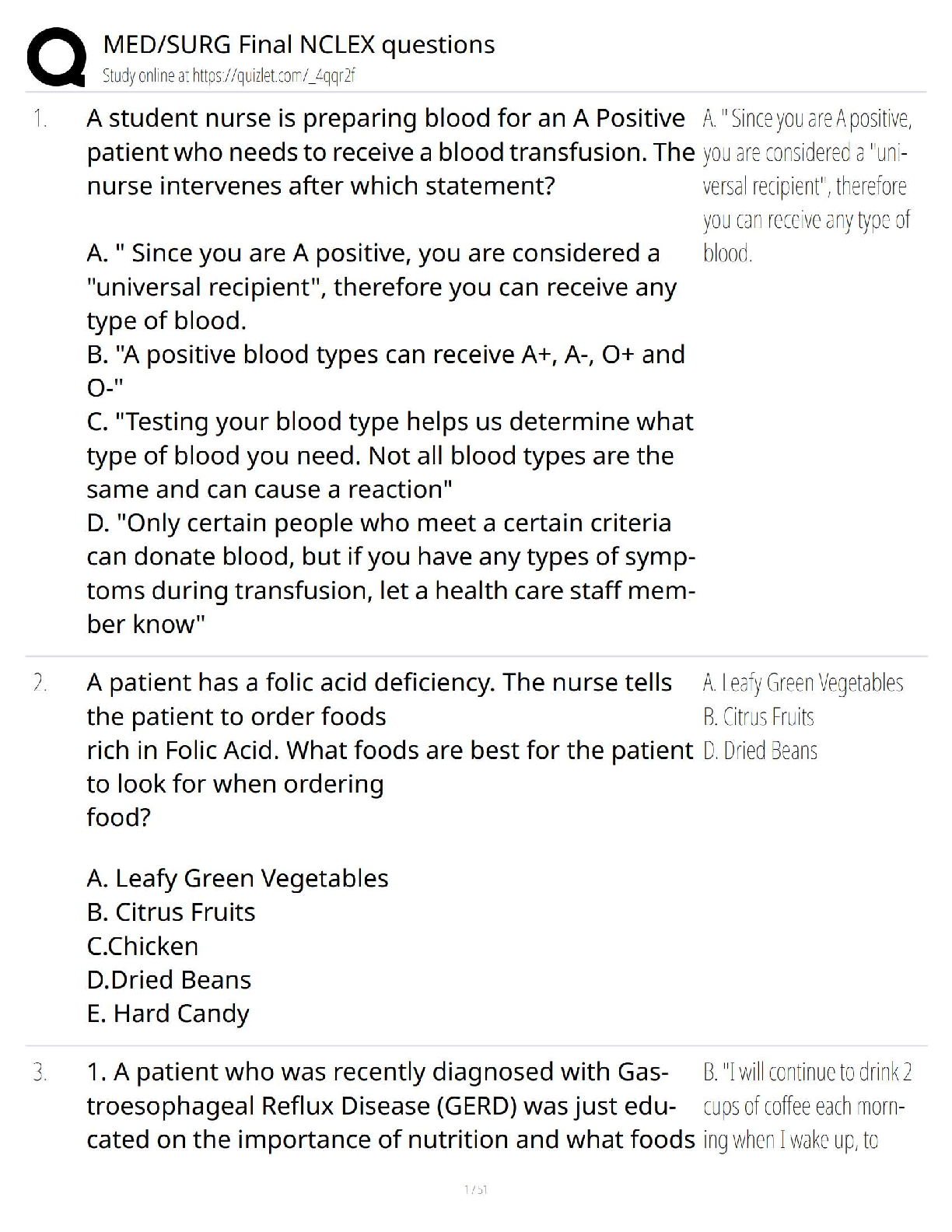 Are you a nursing student gearing up for your Med/Surg final or the NCLEX exam? This is the ultimate study resource you need! Our newly updated 2025/2026 guide features a comprehensive collection of Med/Surg final NCLEX-style questions with detailed, verified answers. Covering critical topics like blood transfusions, nutritional deficiencies, and chronic conditions such as GERD, this guide is meticulously designed to mirror the actual exam format. Ace your test on the first attempt and step confidently into your nursing career. Download now to start your journey to success and avoid costly resits!