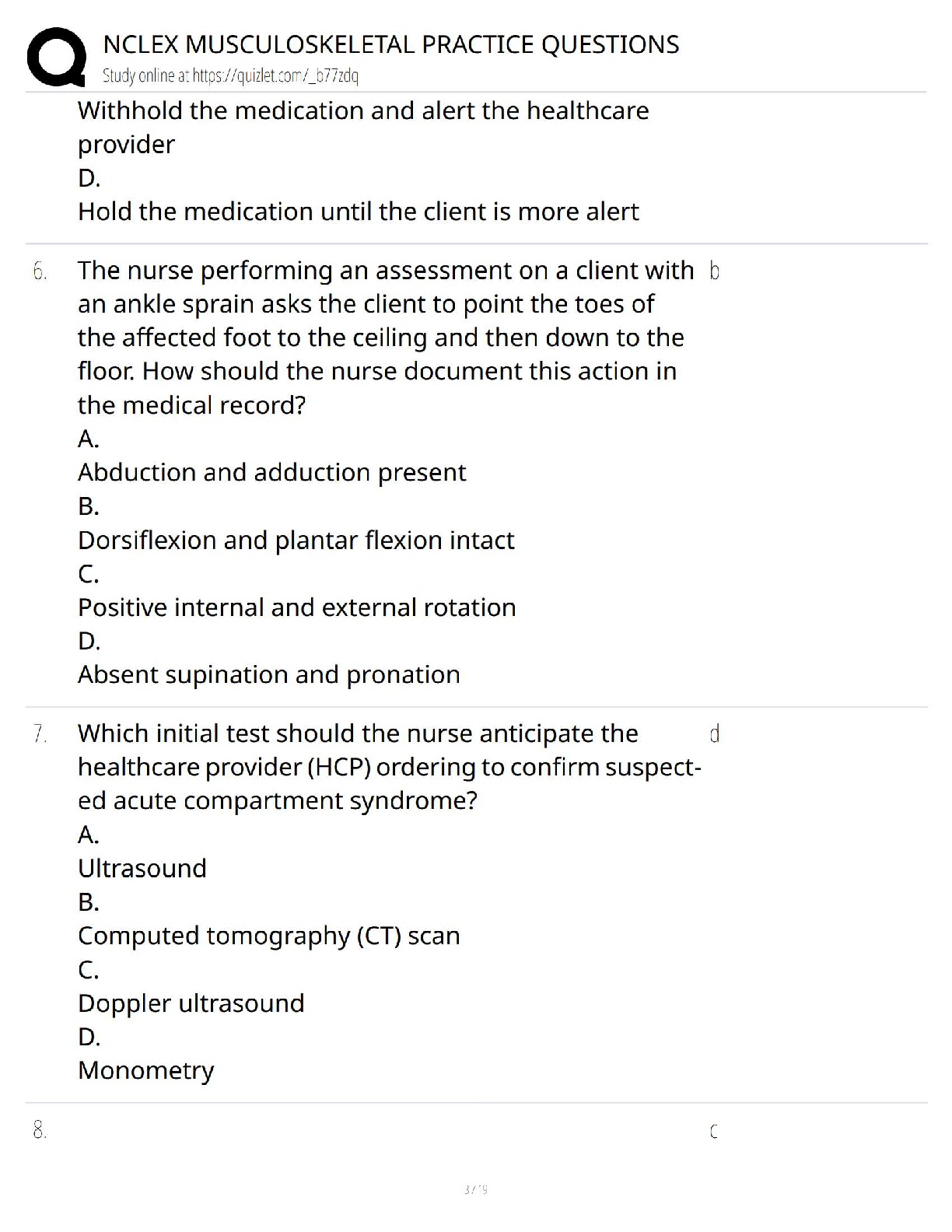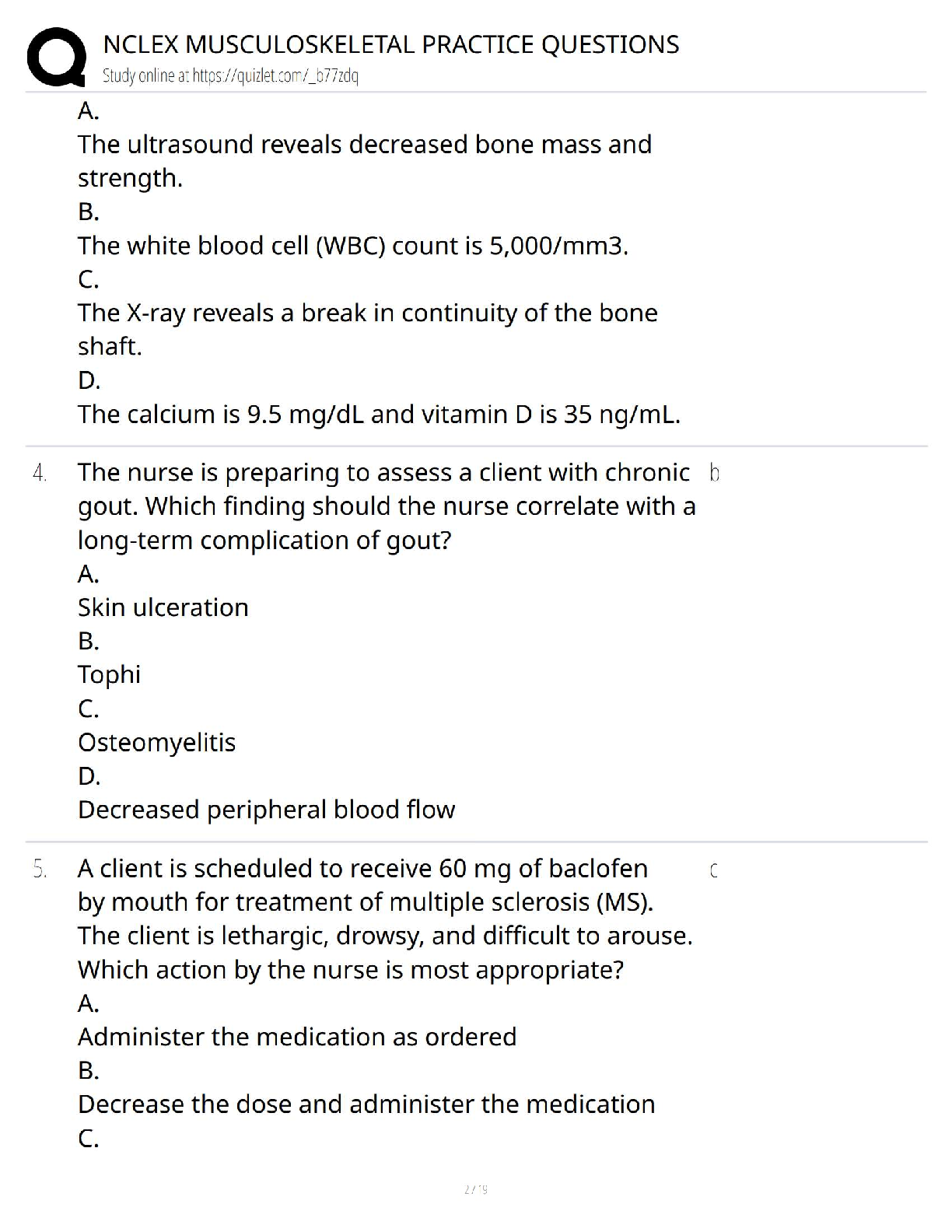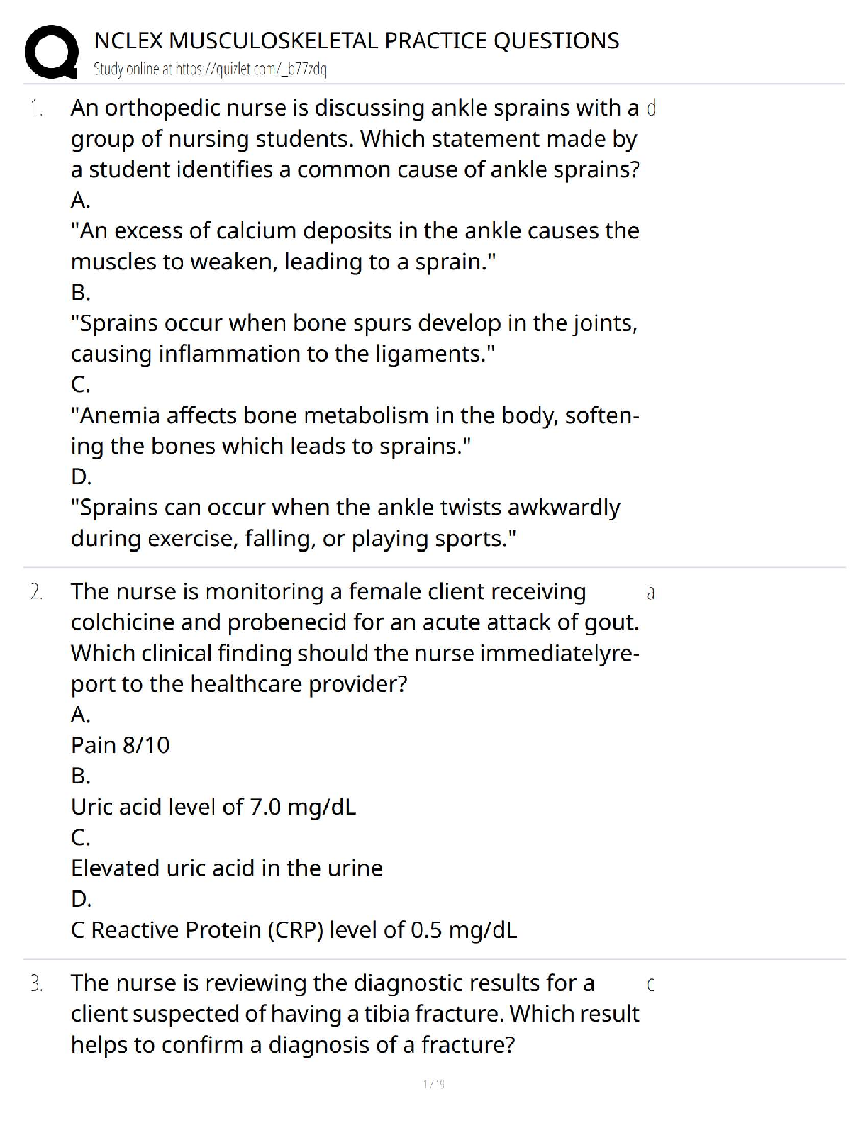 Prepare to excel on your NCLEX exam with our comprehensive Musculoskeletal Practice Questions Test Bank, fully updated for the 2025/2026 testing cycle. This essential study resource provides a wide range of scenario-based questions covering key topics like ankle sprains, gout, fractures, and more. Each question is designed to mirror the format and difficulty of the actual NCLEX, helping you build critical thinking skills and confidence. Master the musculoskeletal system and walk into your exam prepared to pass on your very first attempt. Avoid resits and fast-track your nursing career with this targeted and effective prep tool.