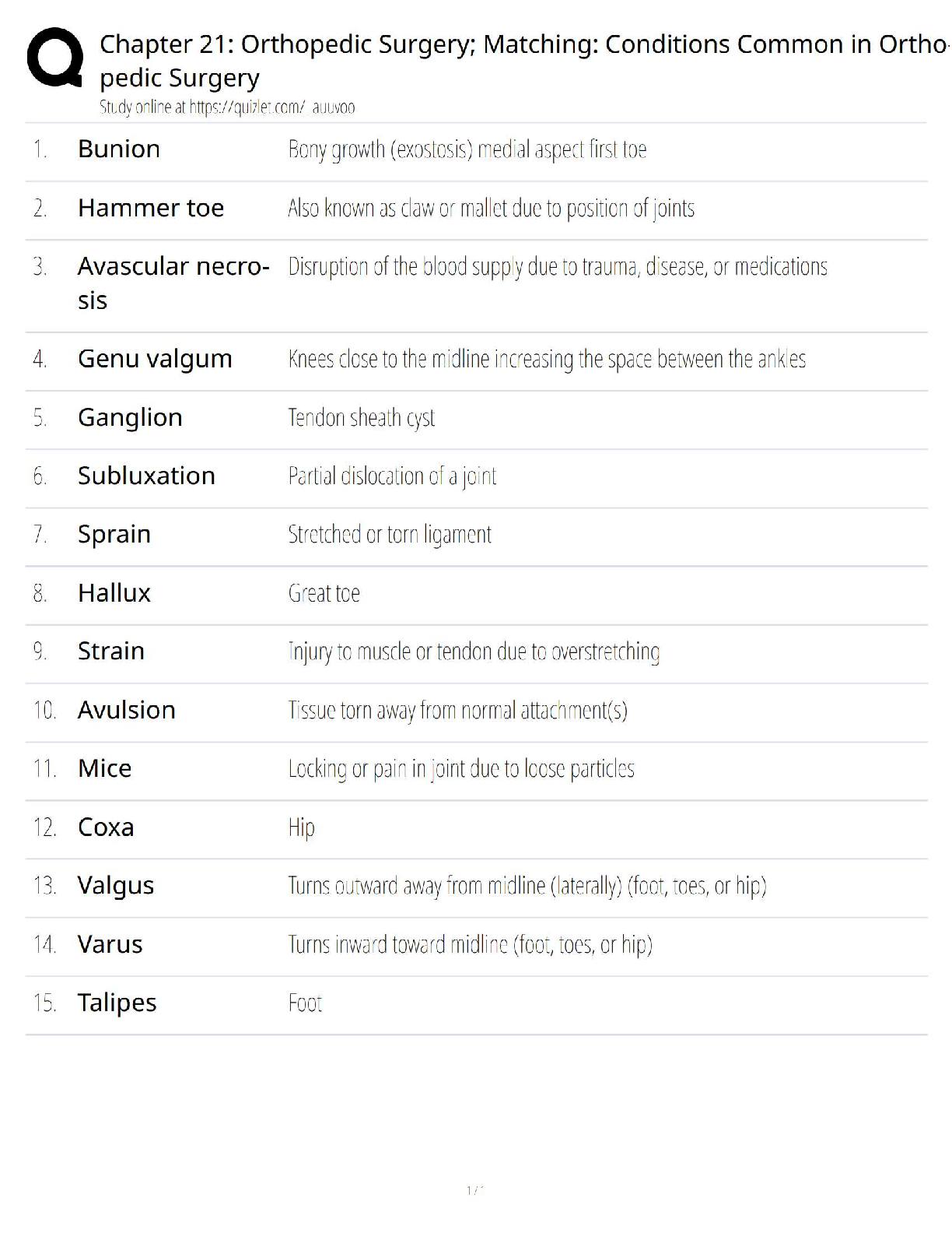 Unlock success in your surgical technology course with this comprehensive study guide for Chapter 21: Orthopedic Surgery, from the 6th Edition of 'Surgical Technology for the Surgical Technologist' by Frey and the Association of Surgical Technologists (AST). This resource provides a detailed breakdown of key terms and common orthopedic conditions, including bunions, avascular necrosis, and subluxation. Perfectly tailored for the 2025/2026 academic year, this guide is designed to help you master the material efficiently, ensuring you pass your exams on the first try and avoid costly resits. Get the essential knowledge you need to excel in orthopedic surgery topics.