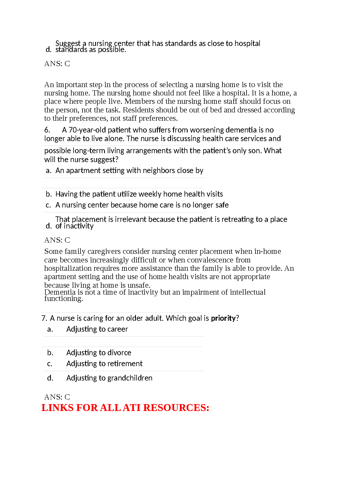 ATI PN Adult Med-Surg Proctored Exam Test Bank 2025/2026: Gerontology Nursing Q&A with Rationales to Ace Your Exam