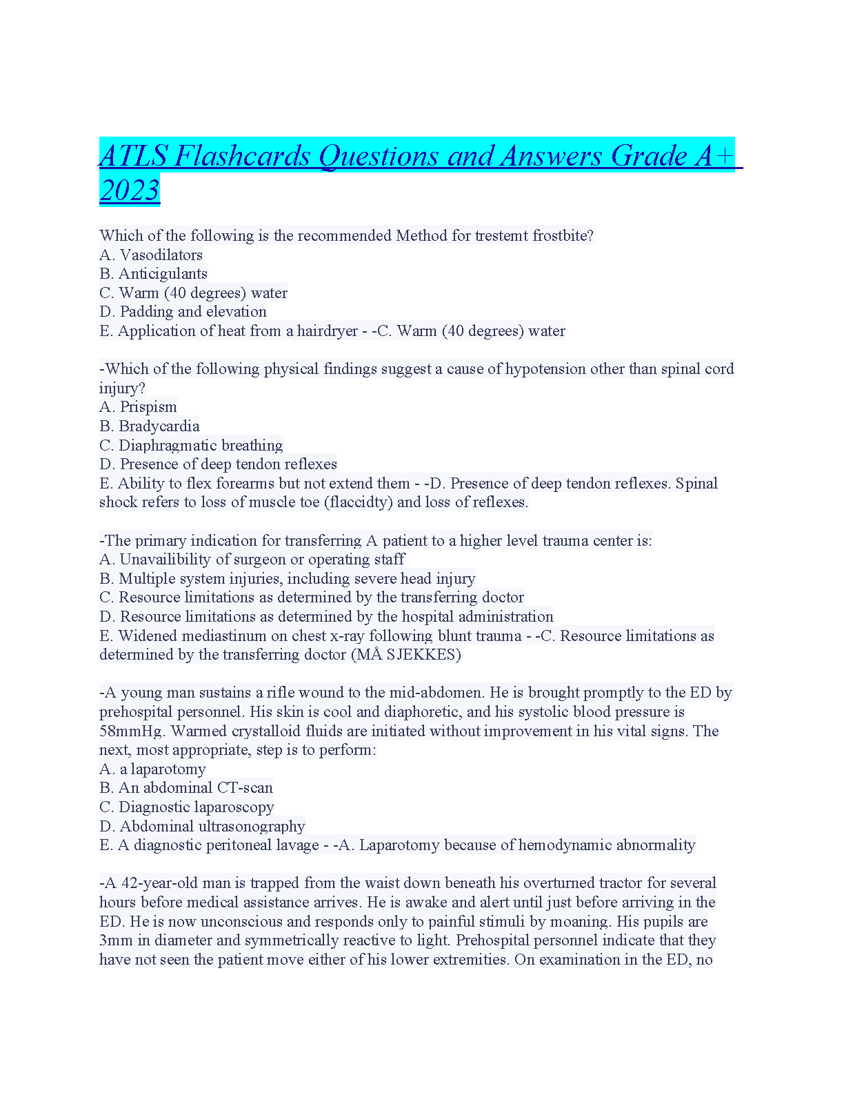 ATLS Flashcards Questions and Answers Grade A+ 2023. DOWNLOAD on www.hackedexams.com INSTANTLY.