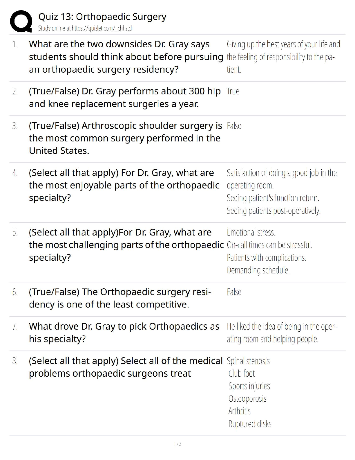 Unlock your full potential in your medical studies with our comprehensive study guide for Quiz 13 on Orthopaedic Surgery. This up-to-date resource for the 2025/2026 academic year provides detailed questions and verified answers, covering essential topics from the perspective of an experienced surgeon. Delve into the realities of an orthopaedic surgery residency, understand the most common procedures, and learn about the diverse medical conditions treated, such as spinal stenosis, sports injuries, and arthritis. This essential guide is meticulously crafted to provide the insights needed to master the subject matter and pass your exams with confidence on the first attempt. Avoid resits and build a strong foundation in one of medicine's most dynamic fields.
