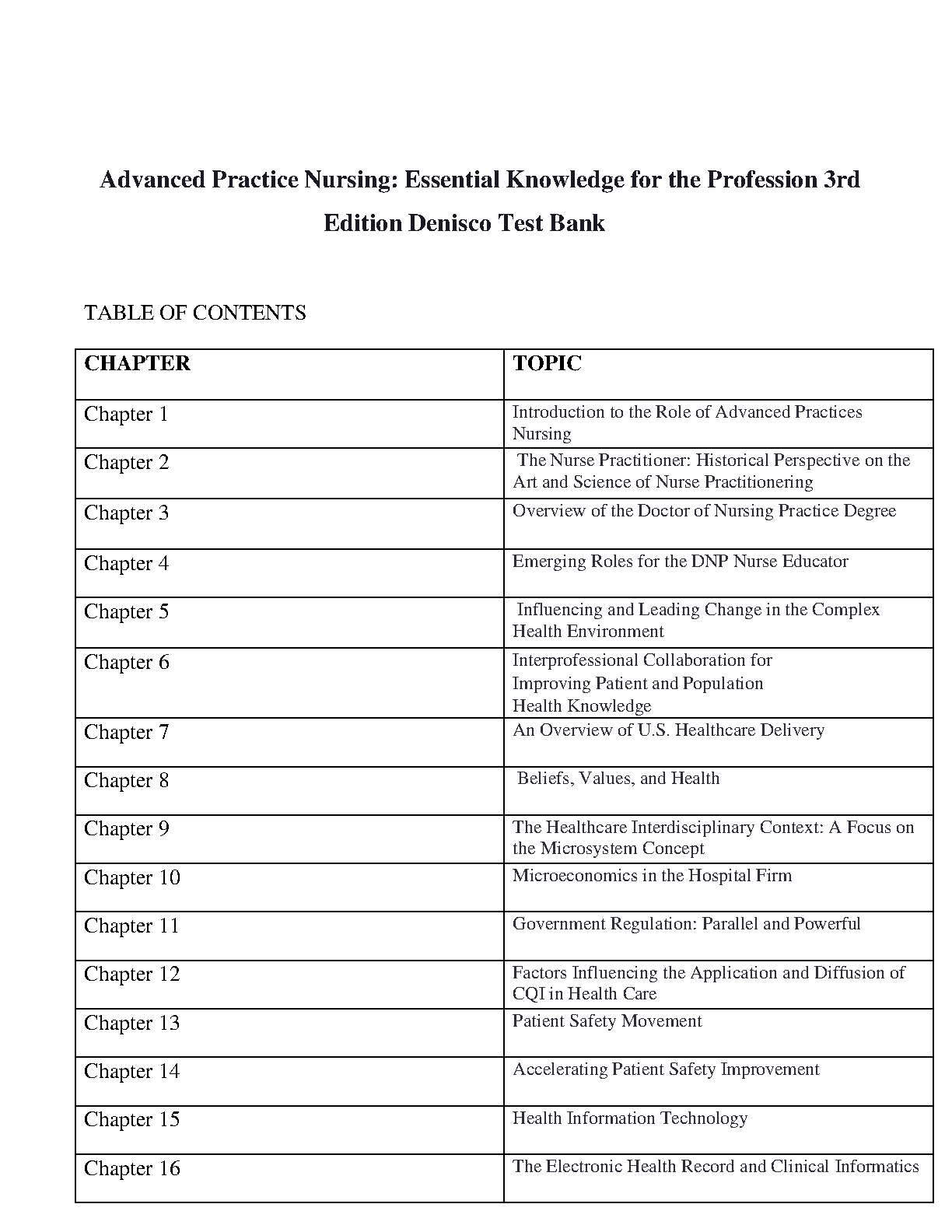 Advanced Practice Nursing: Essential Knowledge for the Profession, 4th Edition (DeNisco, Baker, Yousef, Gcenic) - Official Test Bank
