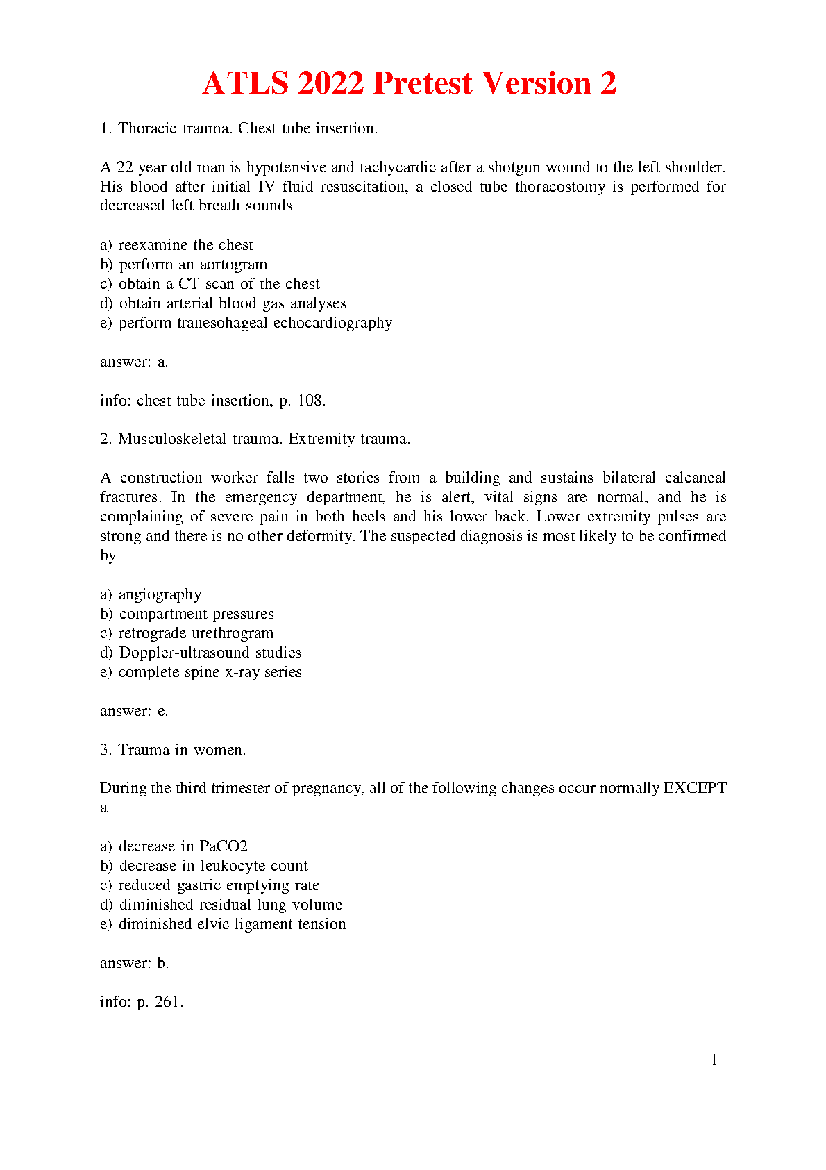 ATLS Pretest Version 2. QUESTIONS AND ANSWERS2023/2024