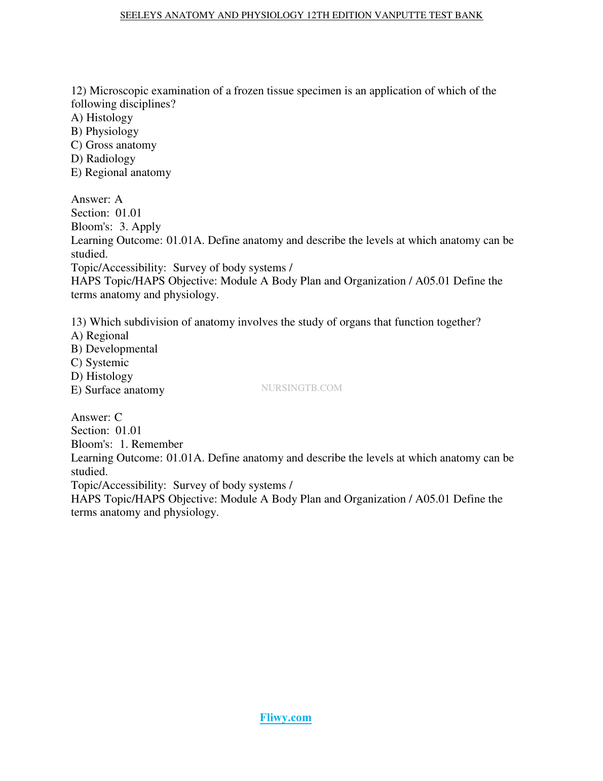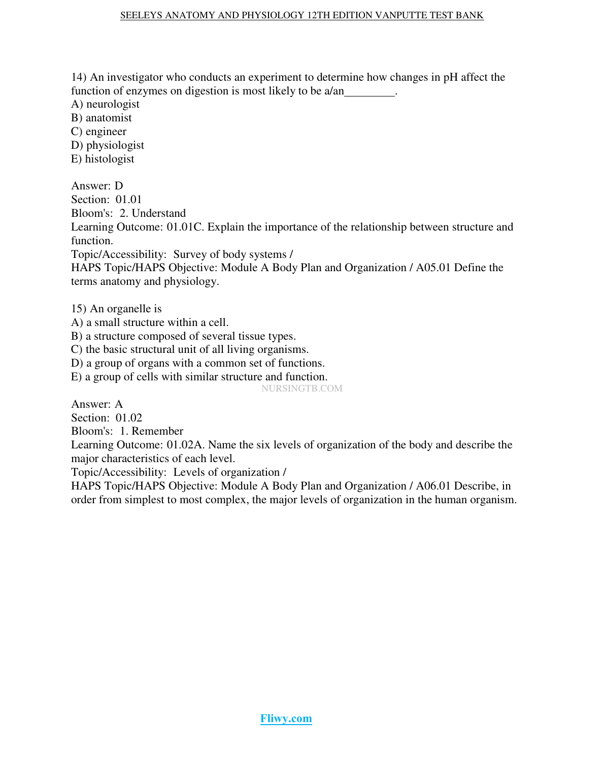Anatomy and Physiology 12th Edition By Cinnamon VanPutte TEST BANK UPDATED 2023