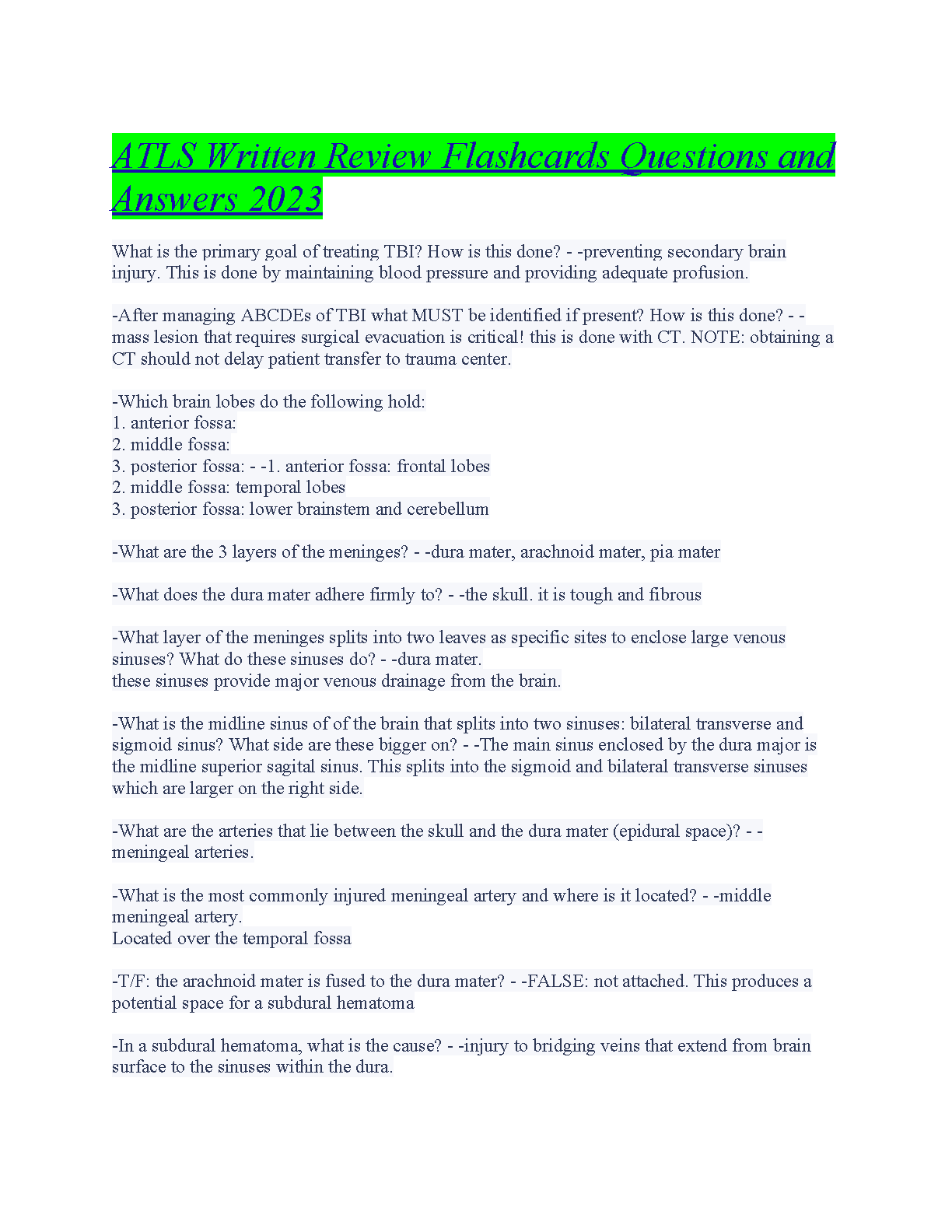 ATLS Written Review Flashcards Questions and Answers 2023/2024. DOWNLOAD on www.hackedexams.com INSTANTLY.