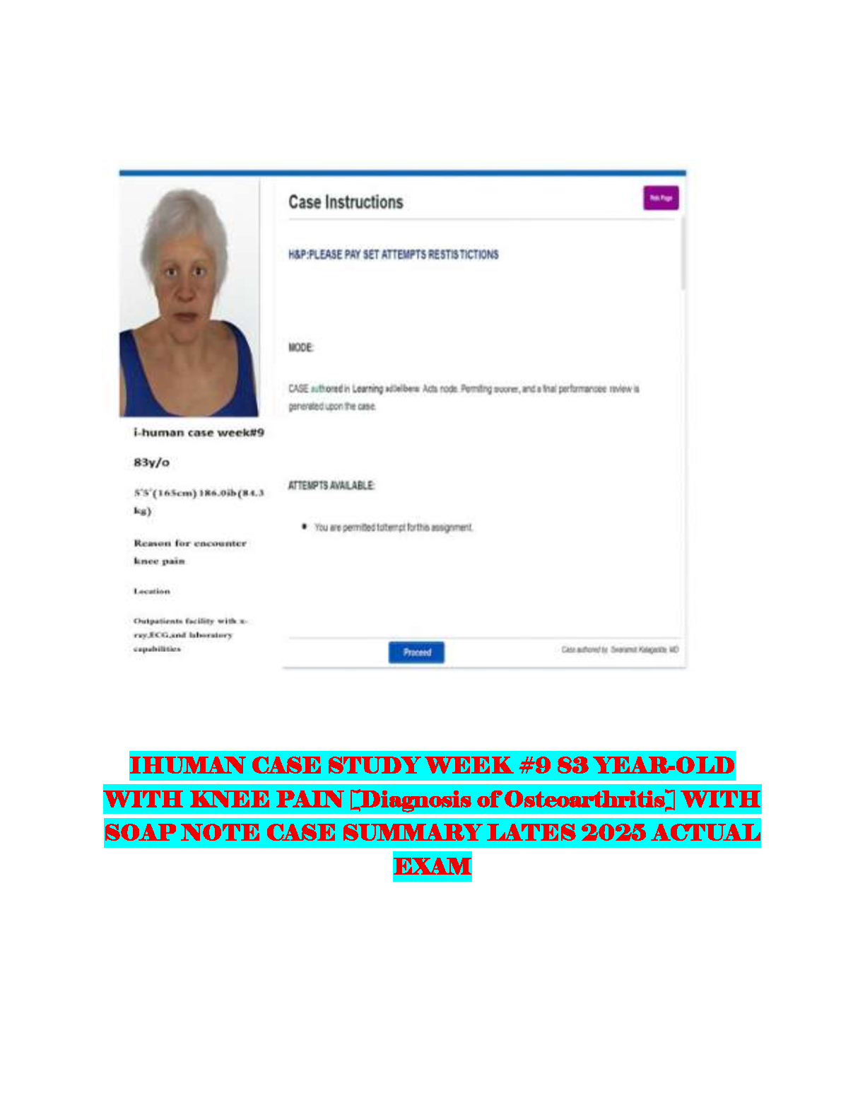 iHuman Case Study Week 9: Knee Pain & Osteoarthritis in an 83-Year-Old Patient by Swarnal Kalagotla MD | Latest 2025/2026 Study Guide to Pass on Your First Attempt