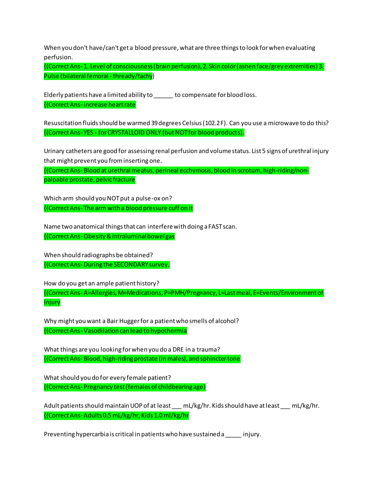 ATLS Question Bank All with Correct Answers (ADVANCED TRAUMA LIFE SUPPORT) 2022/2023
