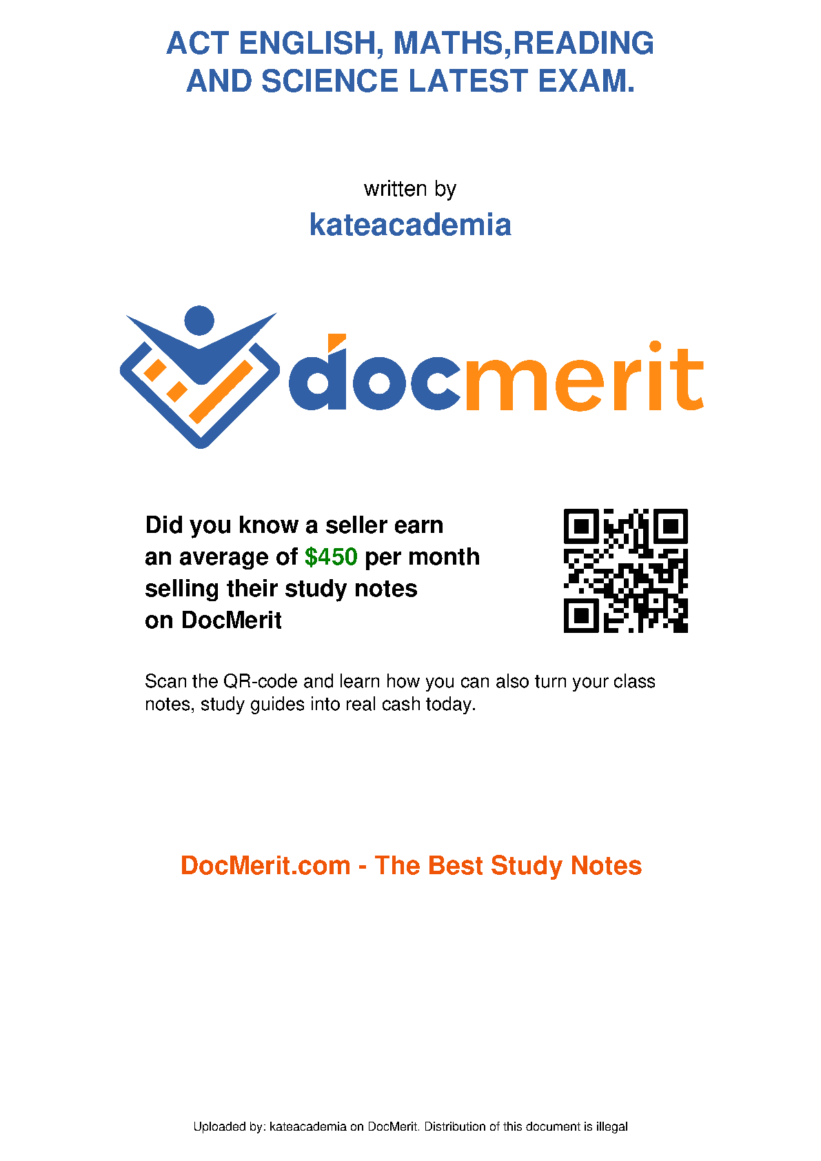 Unlock your full potential and ace the ACT on your first try with this comprehensive Test Bank for the 2025/2026 academic year. This ultimate study resource, meticulously compiled by kateacademia, covers all four essential sections: English, Math, Reading, and Science. Packed with the latest exam-style questions, detailed answers, and expert explanations, this guide is your key to mastering the test format, improving your time management, and boosting your confidence. Stop worrying about resits and secure the high score you need for your dream college. Download now and start your journey to success!