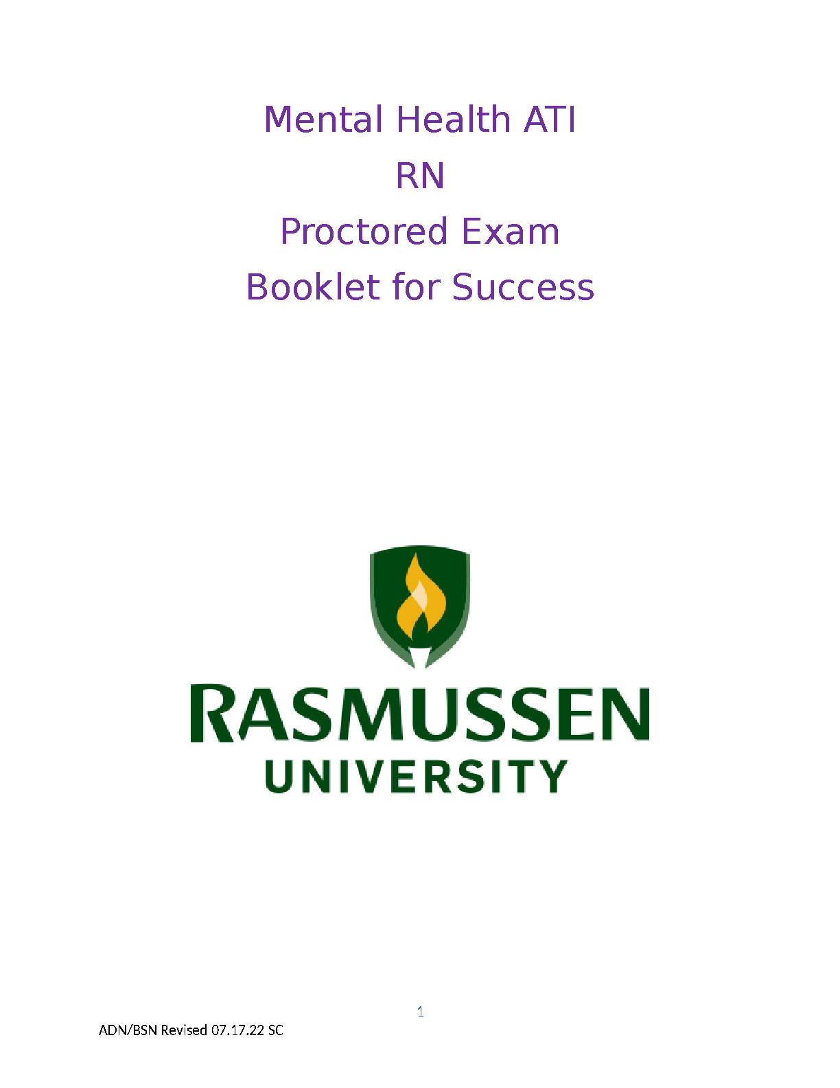 ATI RN Mental Health Proctored Exam 2024/2025 Test Bank | Rasmussen University Success Booklet with Verified Questions & Answers