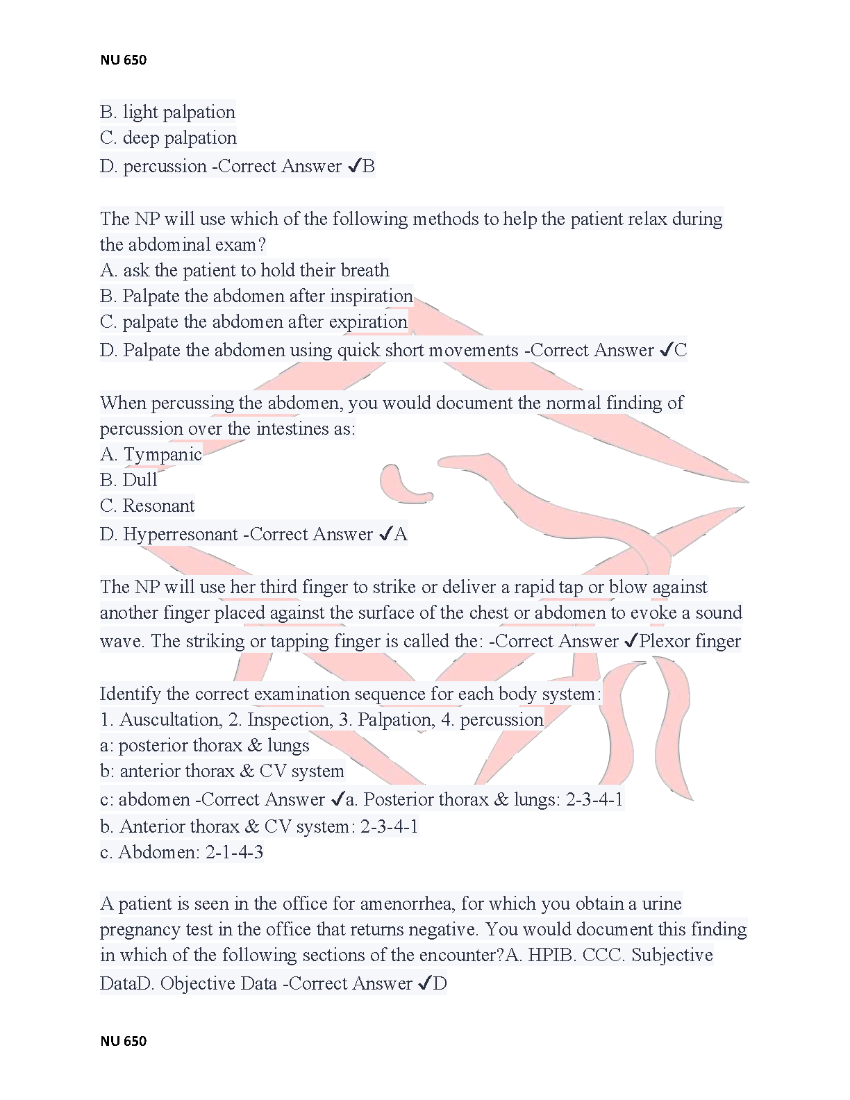 NU 650 Exam 3 Test Bank: Latest 2025-2026 Verified Questions and Answers Study Guide to Ace Your Advanced Health Assessment Exam