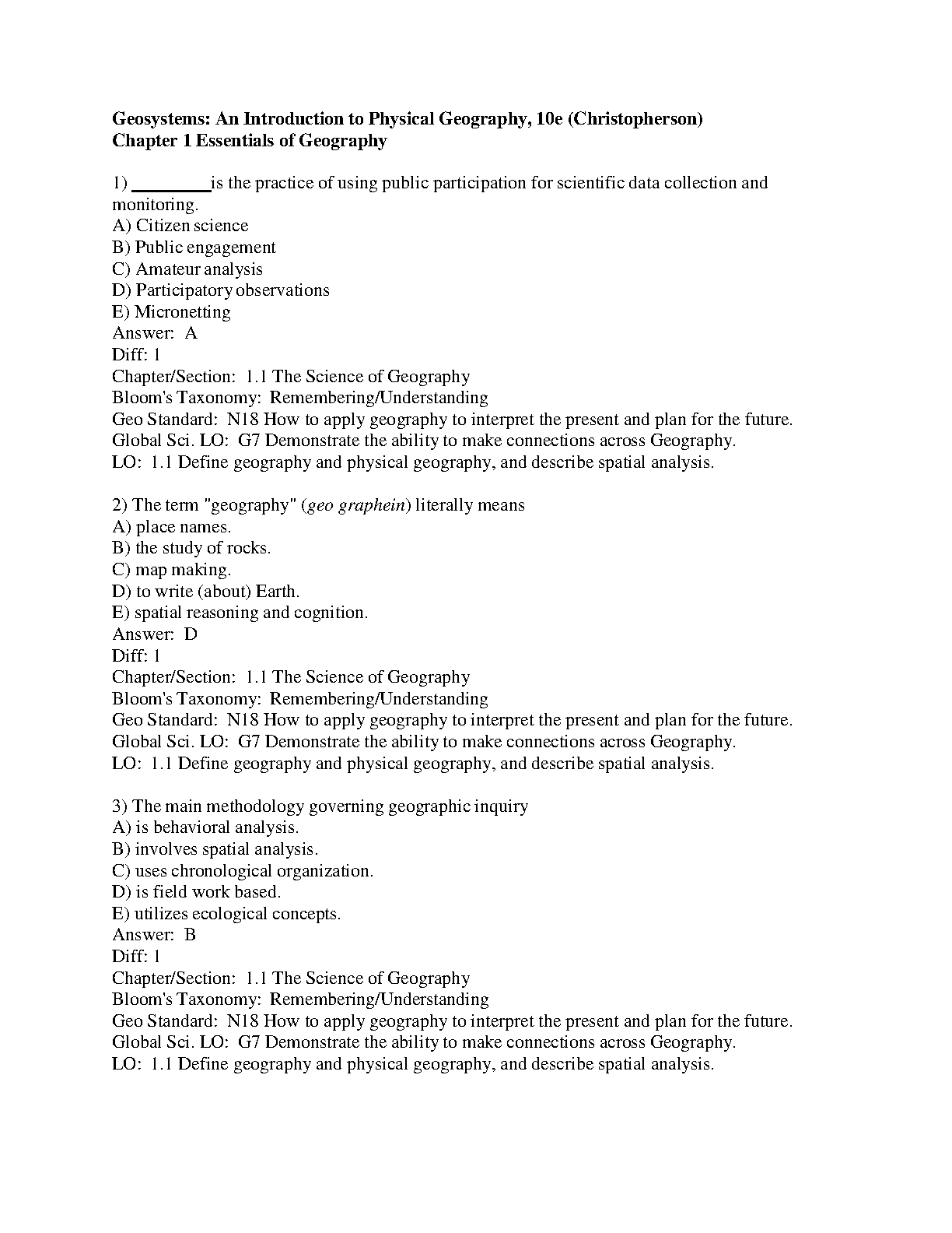 Master your physical geography course with the official Test Bank for Geosystems: An Introduction to Physical Geography, 10th Edition, authored by Robert W. Christopherson and Ginger H. Birkeland. This essential study companion is designed to help you excel in your exams by providing a vast collection of practice questions that mirror the actual test format. Covering all chapters of the textbook, this resource allows you to thoroughly assess your knowledge, identify areas for improvement, and solidify your understanding of key geographical concepts. Get immediate access to a wealth of questions and answers to ensure you are fully prepared to achieve top grades.