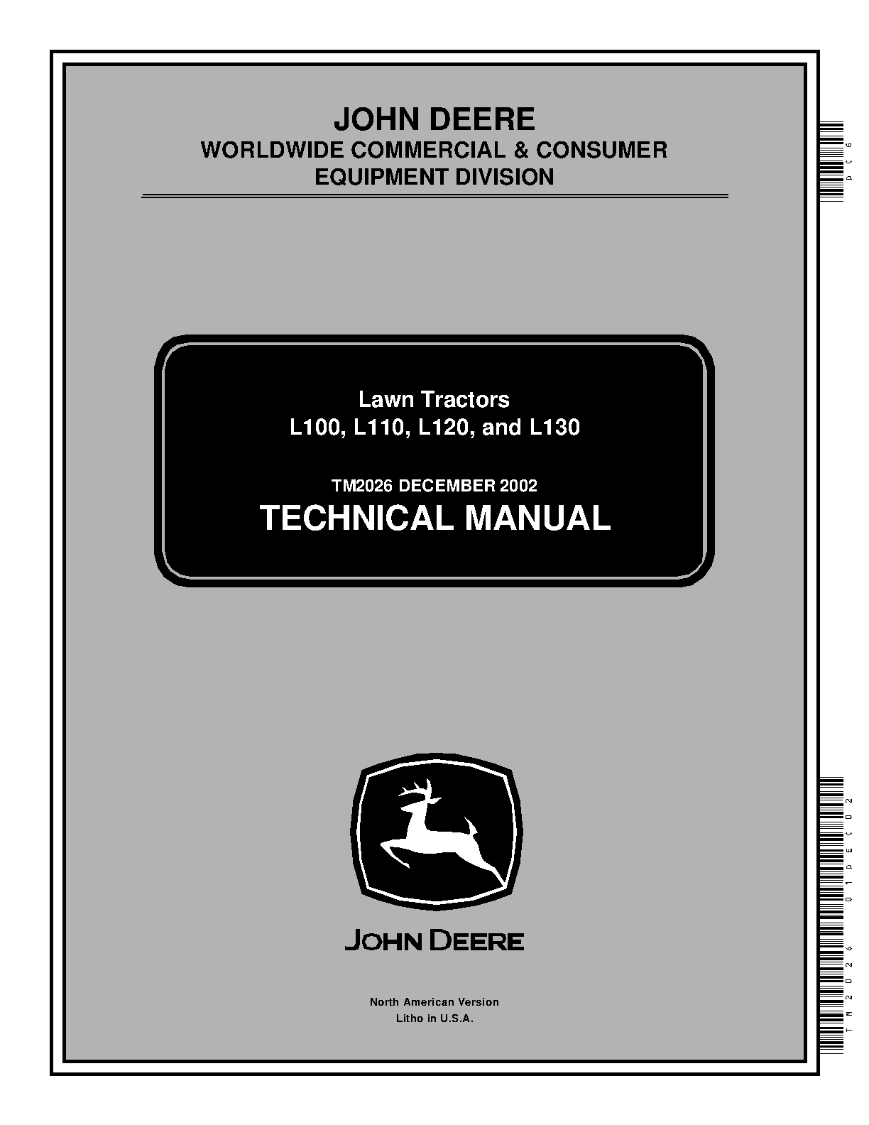 John Deere L-Series Lawn Tractor Technical Manual (TM2026, Dec 2002 Edition) - Complete Service & Repair Guide for L100, L110, L120, L130 Models