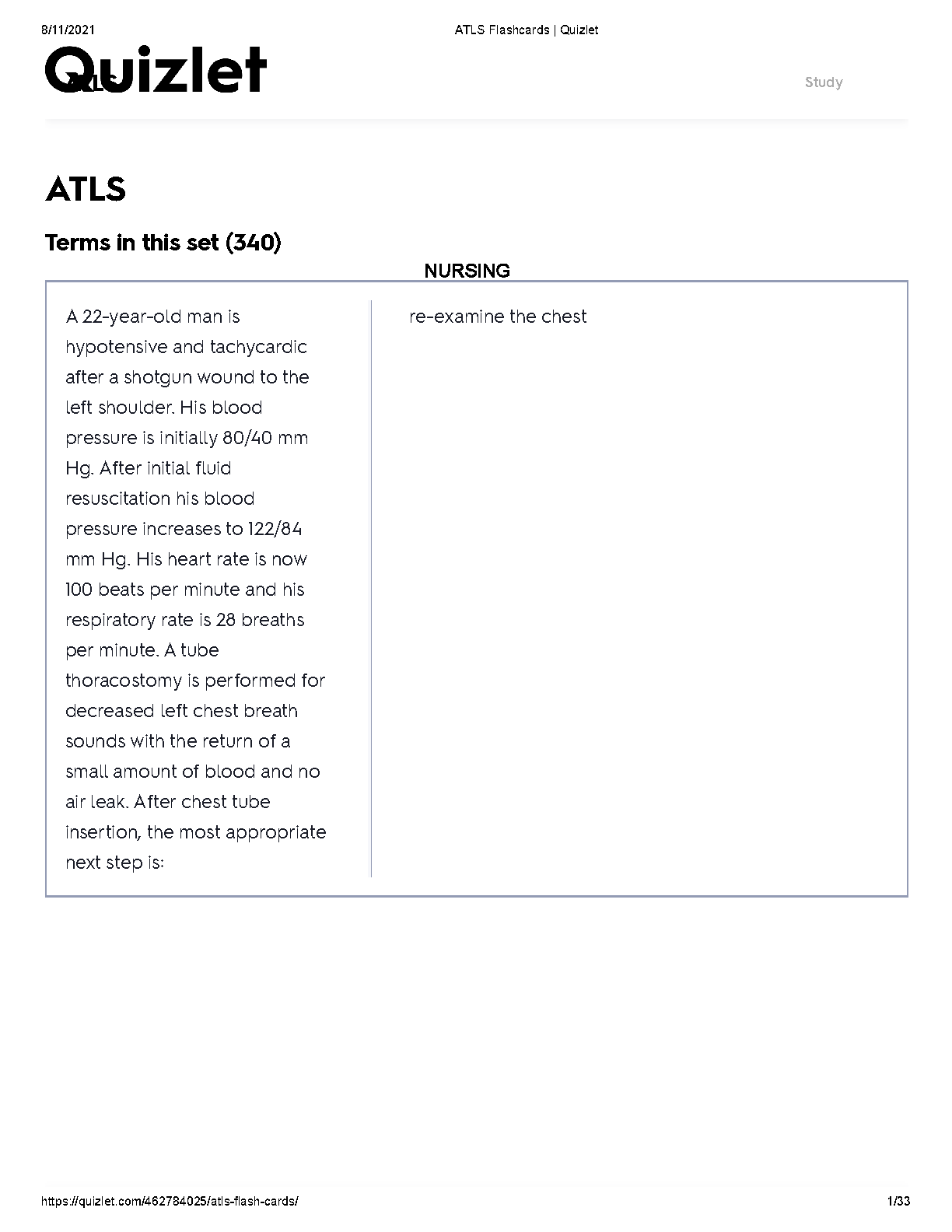 ATLS Flashcards | Quizlet. LATEST UPDATED VERSION 2023/2024