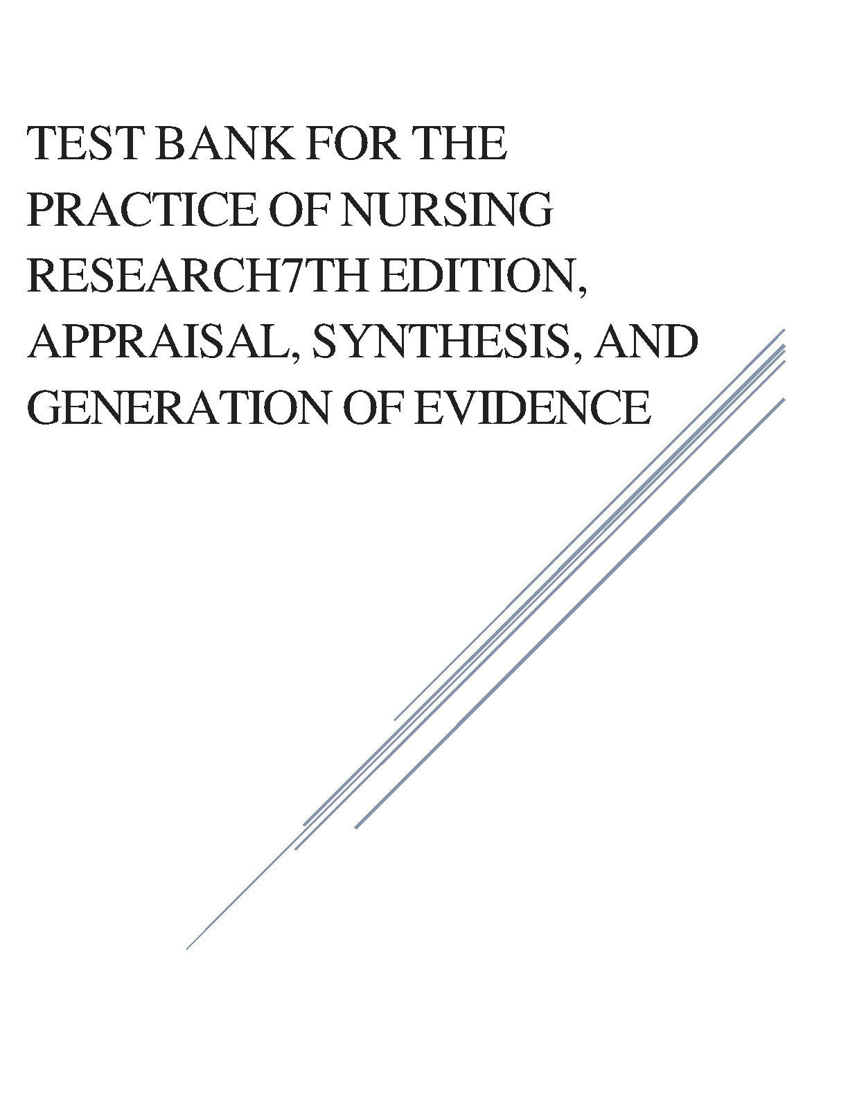 Test Bank for The Practice of Nursing Research: Appraisal, Synthesis, and Generation of Evidence, 7th Edition by Jennifer R. Gray, Susan K. Grove, and Suzanne Sutherland