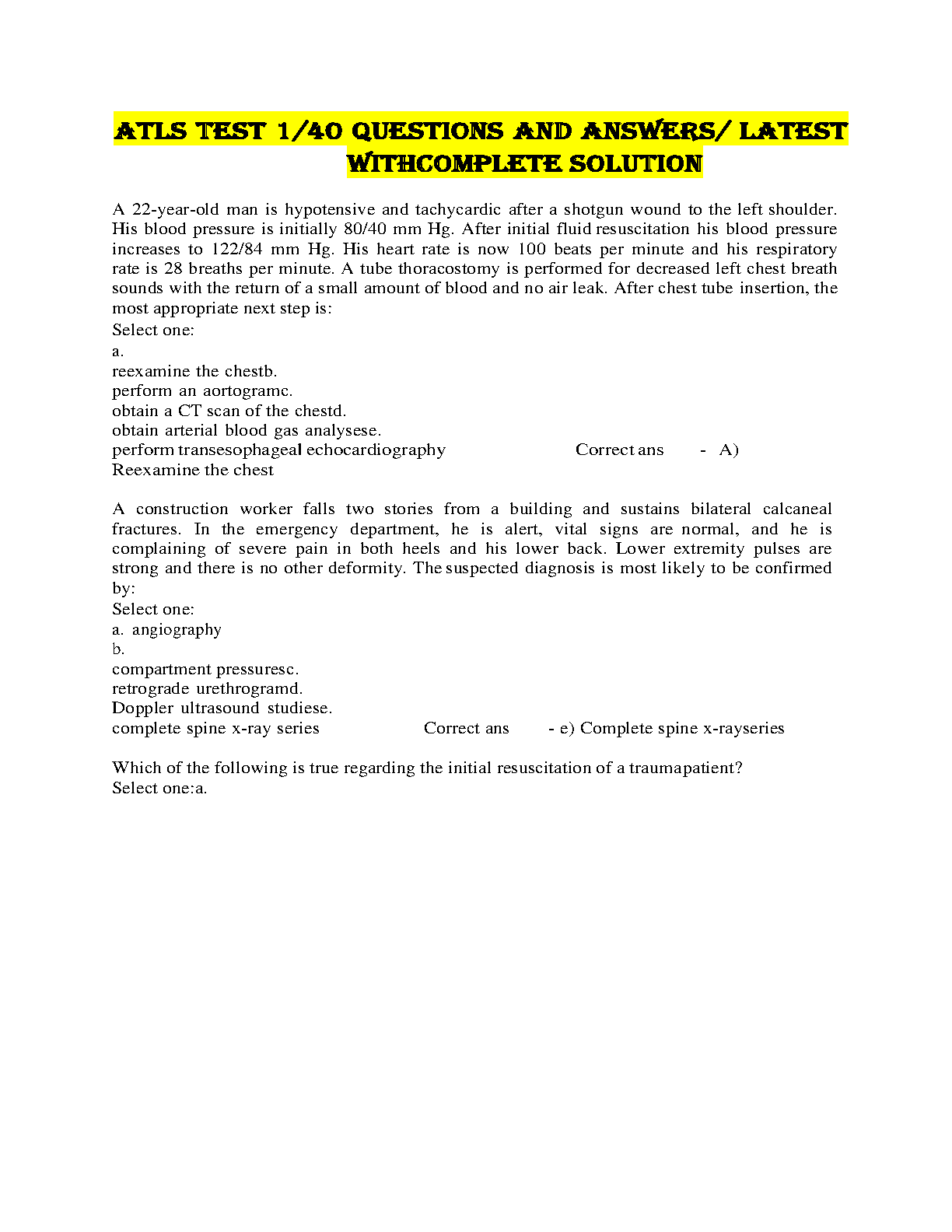ATLS TEST 1 QUESTIONS AND ANSWERS. LATEST WITH COMPLETE SOLUTION 2023. DOWNLOAD on www.hackedexams.com INSTANTLY.