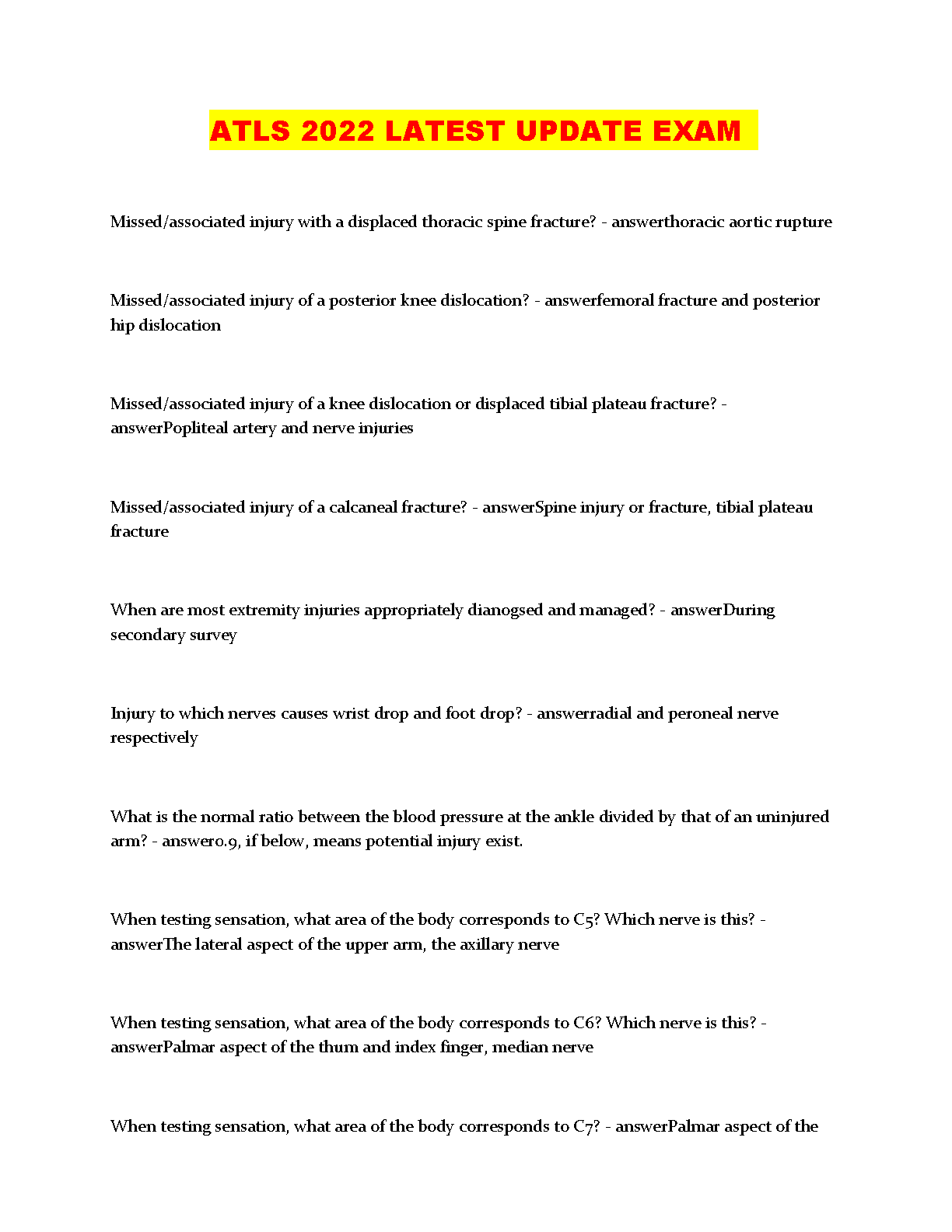 ATLS. LATEST UPDATE EXAM WITH 100% VERIFIED ANSWERS 2023. DOWNLOAD on www.hackedexams.com INSTANTLY.